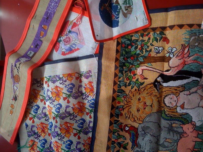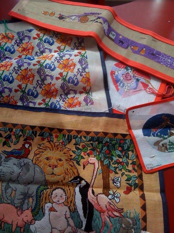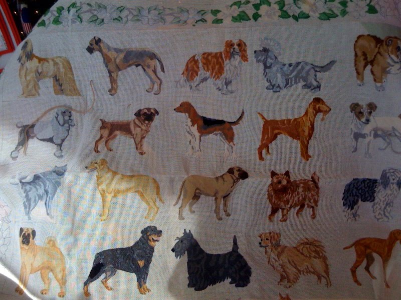 Lee has been working on the dog rug for many years. Her mother, noted needlepointer author Hope Hanley, started the piece. Once the rug is stitched, Lee is donating it to the Dog Museum in St. Louis. It's a really wonderful piece.