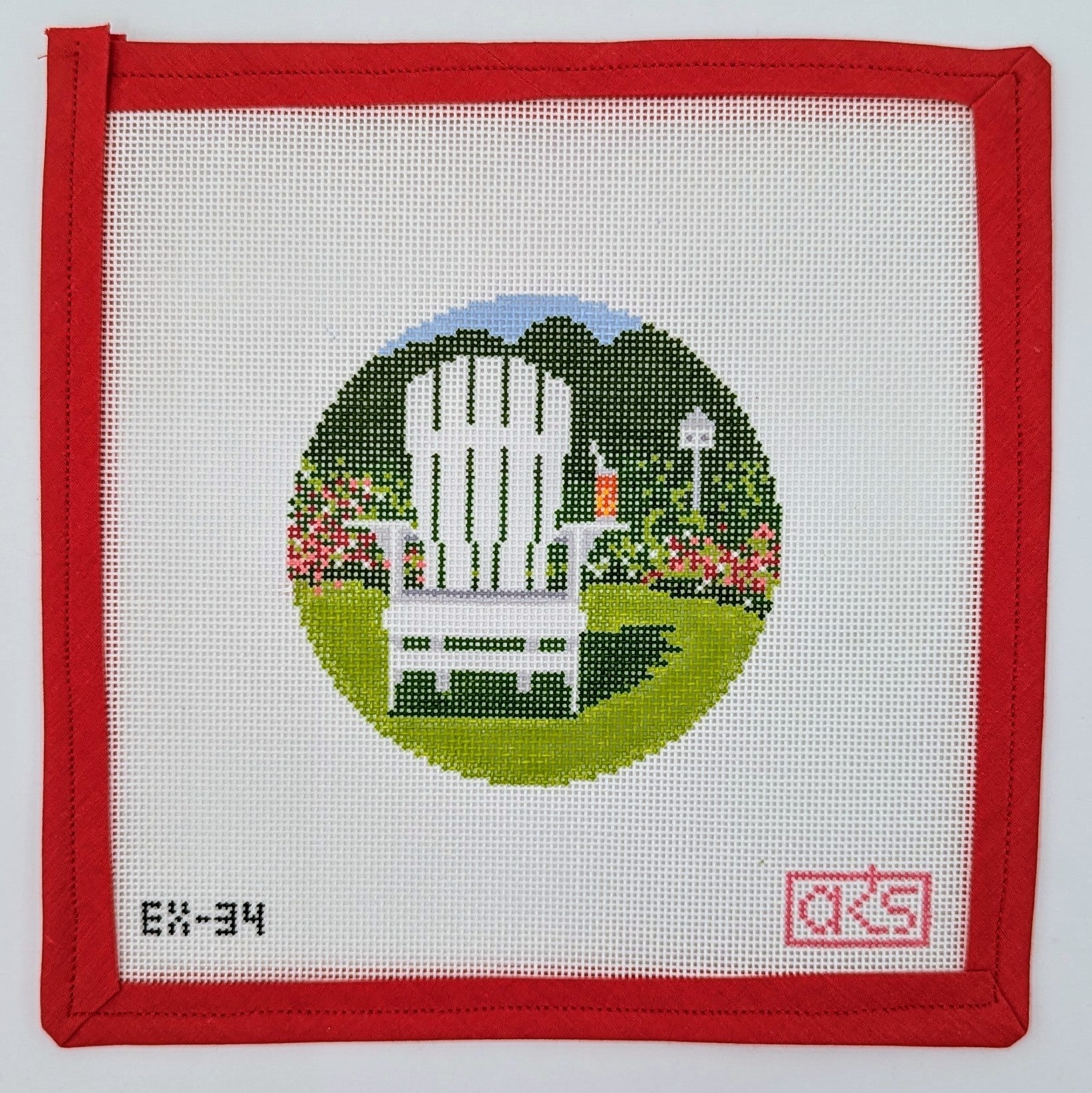 Celebrate the essence of summer with the Adirondack Chair Summer needlepoint canvas! This charming design features a classic Adirondack chair, perfect for evoking memories of relaxing days spent outdoors. Crafted on an 18 mesh canvas and measuring 4” round, this piece is ideal for stitching a vibrant ornament that showcases your love for summer and the beauty of nature. Stitch this delightful canvas and let it bring a warm, inviting touch to your decor!
