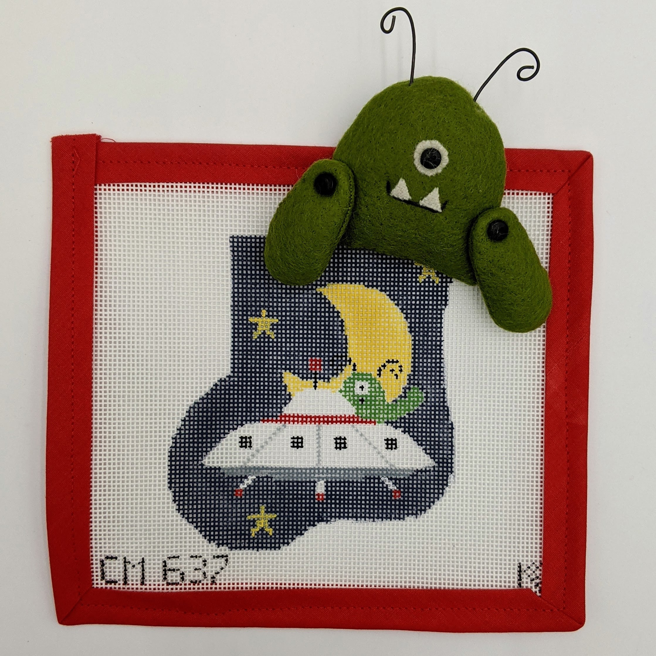 Blast off into creativity with this whimsical Alien with Space Ship + Stuffie needlepoint canvas! Featuring a playful alien and their spaceship, this 18-mesh canvas is perfect for creating a unique ornament or decorative piece. Don’t forget the adorable stuffie to complete the set—it’s a stellar project for stitchers of all levels!