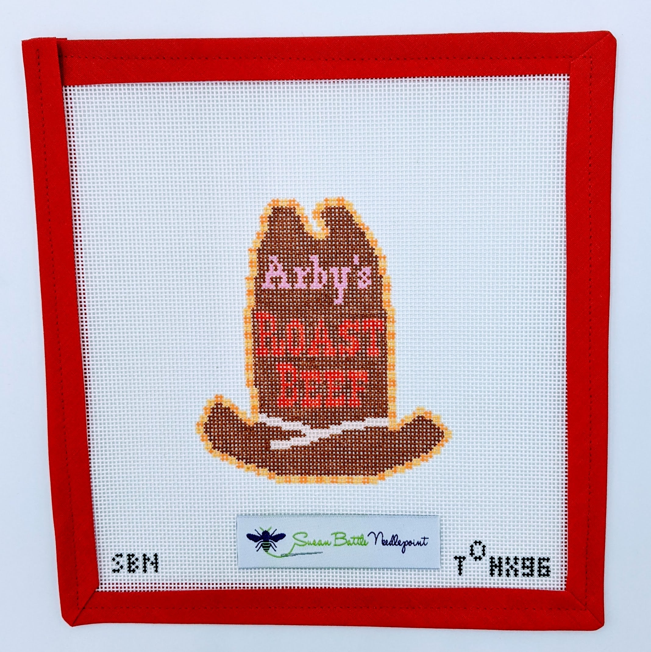 Celebrate your love for Arby’s with this fun Arby’s needlepoint canvas! Featuring the iconic Arby’s logo, this 18-mesh canvas is perfect for creating a unique ornament or decorative piece. At approximately 3.75" x 4", it’s a quick and enjoyable project for stitchers of all levels. Whether you’re stitching it for yourself or gifting it to a fellow Arby’s fan, this canvas is sure to bring a smile!