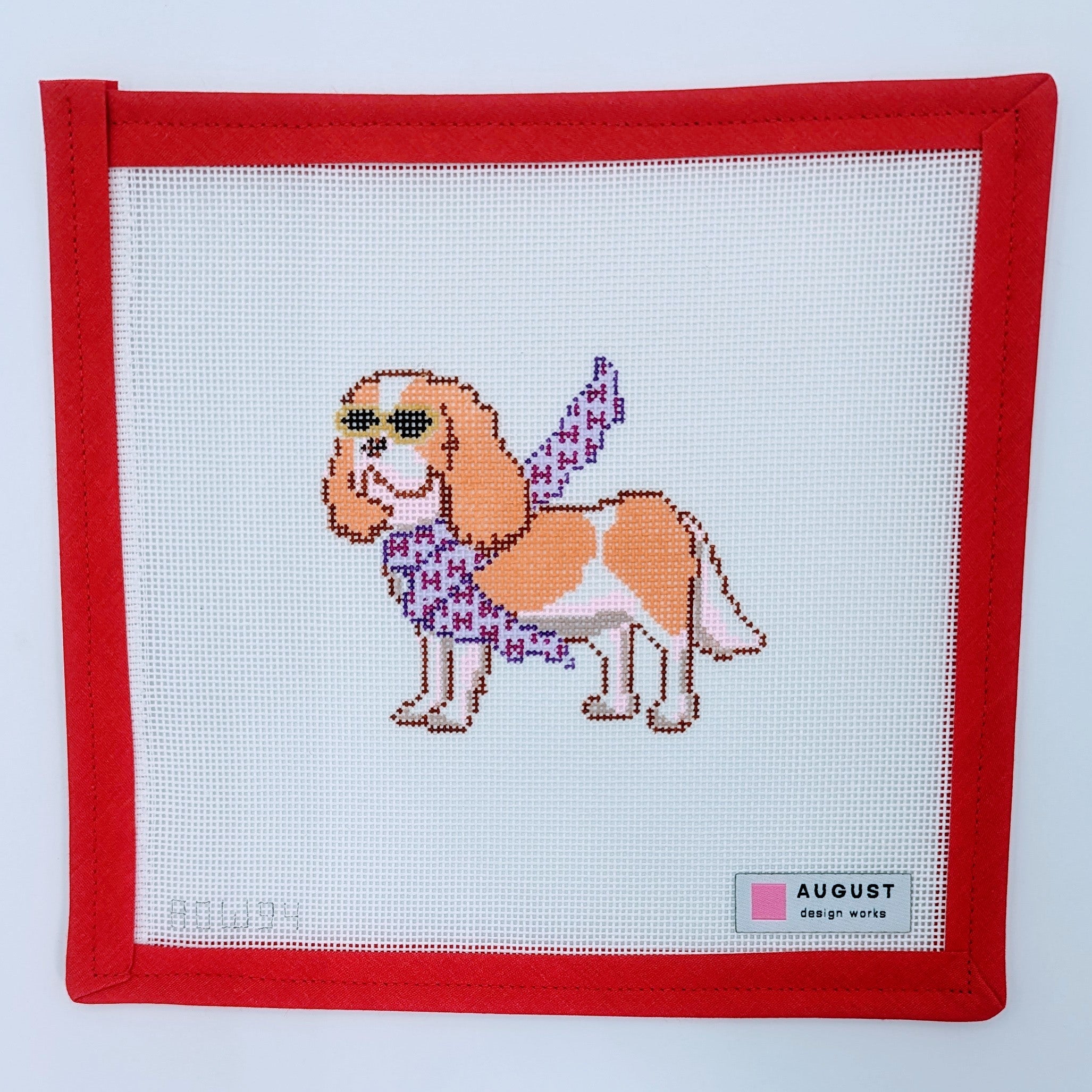 Add some sophisticated flair to your needlepoint collection with this Bougie Cavalier King Charles canvas. Featuring the adorable Cavalier King Charles Spaniel in a chic and stylish design, this canvas is perfect for dog lovers who appreciate a touch of elegance. Whether you're stitching it for yourself or as a gift for a fellow dog enthusiast, this design will bring charm and class to any project.