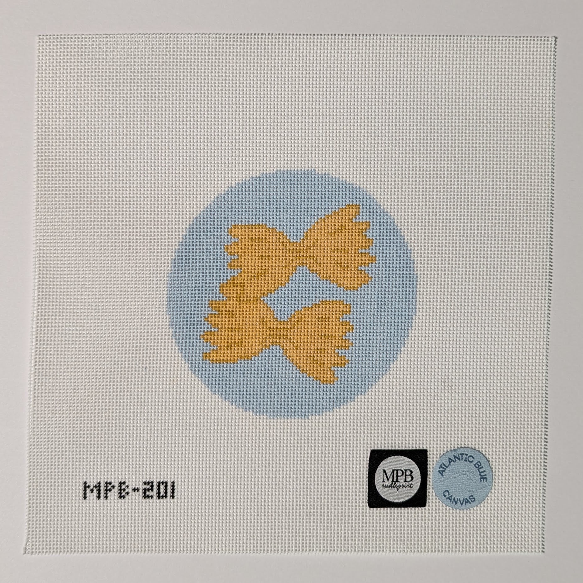 Get ready to stitch up some culinary charm with our delightful Bow Tie Pasta Round needlepoint canvas! This fun and whimsical design features a charming bow tie pasta motif, perfect for food lovers and stitch enthusiasts alike. Measuring approximately 4" round and crafted from 18 mesh, it's an ideal canvas for creating a decorative piece that’s sure to spice up your kitchen or make a unique gift for your favorite chef. Dive into this project and let your creativity boil to the surface!