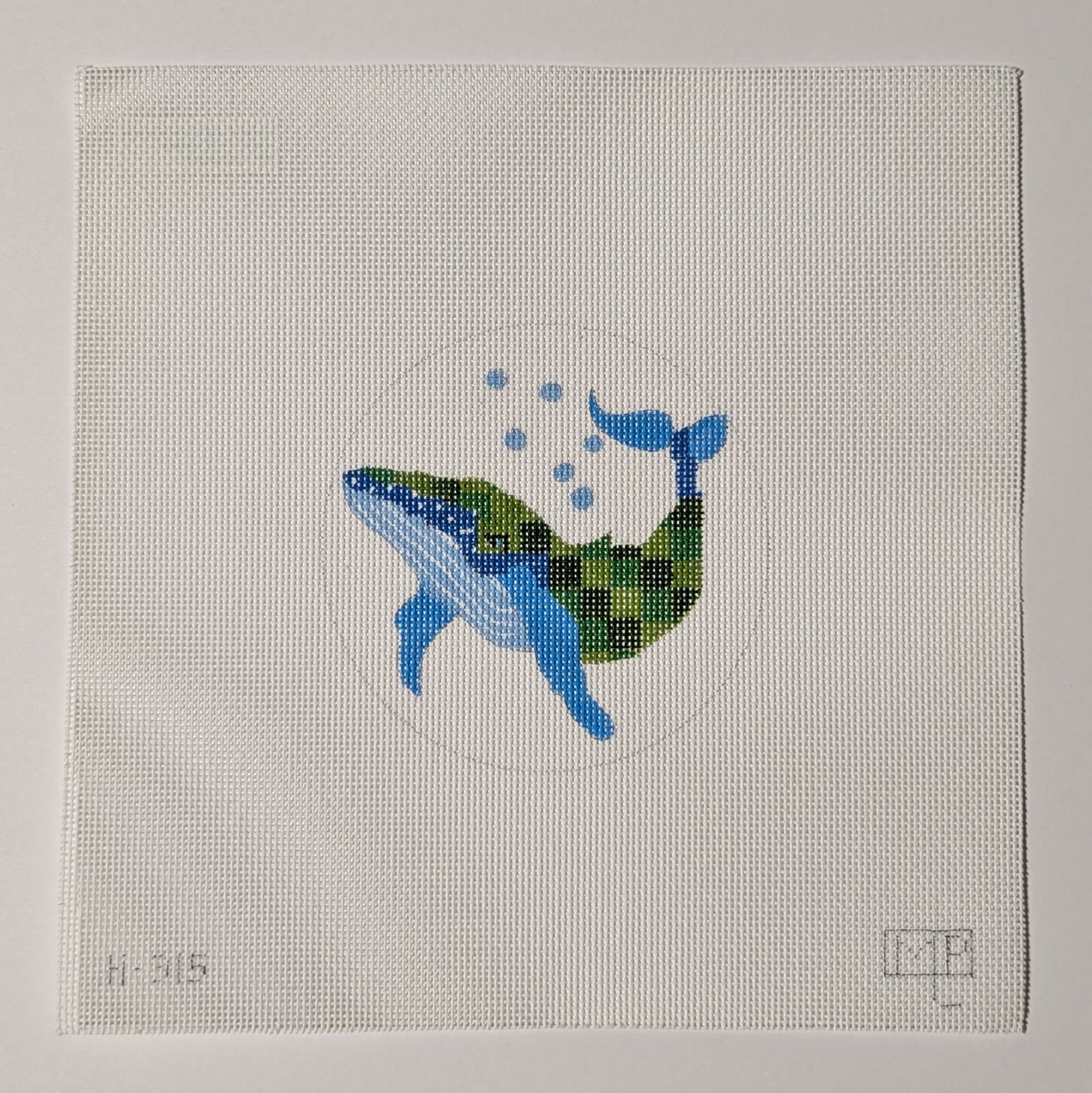 Bubbles the Whale needlepoint canvas! This delightful 18-mesh design features the endearing Bubbles, a whale that’s sure to bring a splash of joy to your stitching adventures. With an approximate size of 4" round, this canvas is perfect for creating whimsical ornaments or decorative pieces that will brighten up any space. So grab your threads and let Bubbles swim into your heart or make a fabulous gift for a fellow stitcher!