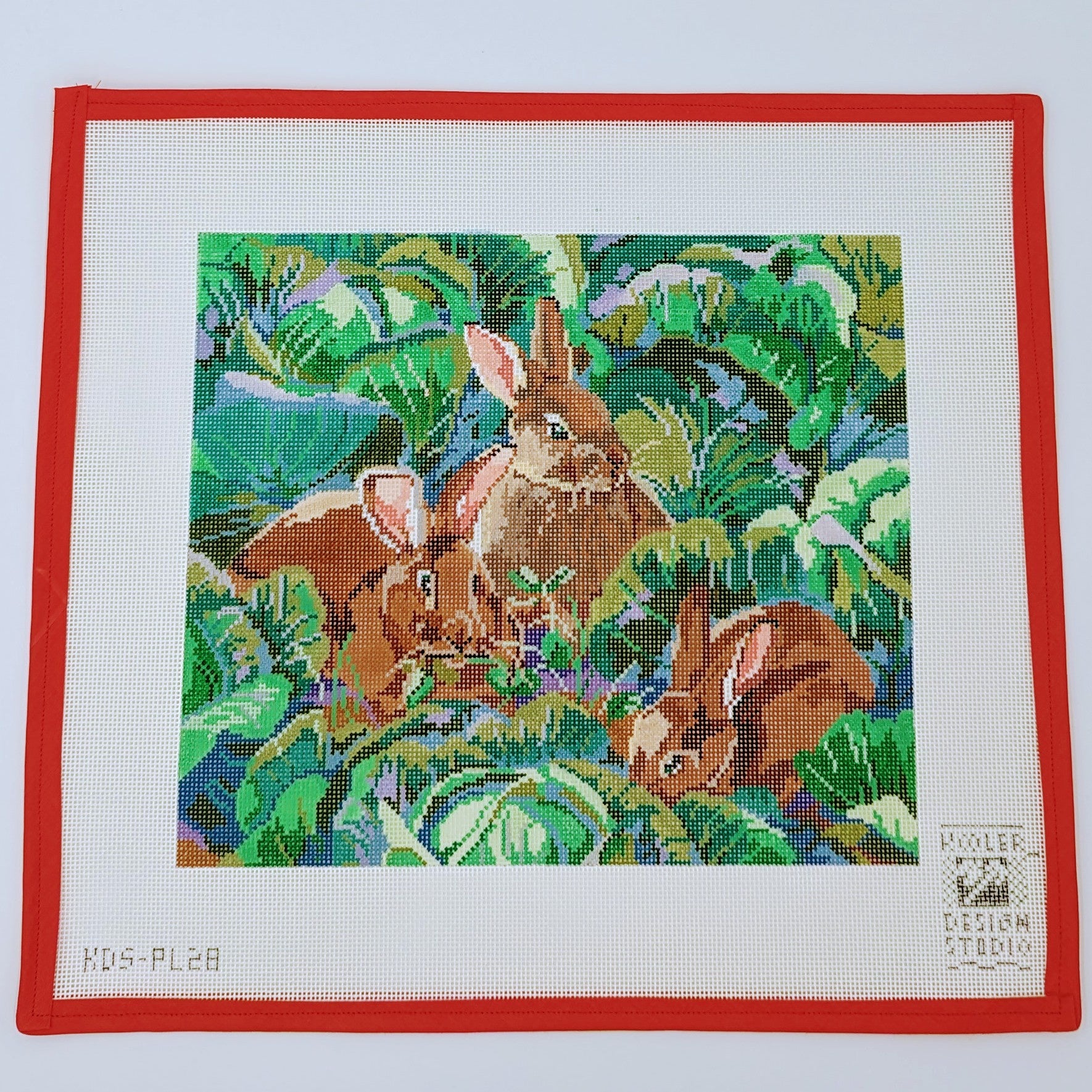 Introduce a delightful touch of spring to your decor with the Bunnies in Cabbage needlepoint canvas! This charming design features adorable bunnies nestled among vibrant cabbage leaves, making it a perfect addition to your Easter celebrations or to brighten any room. Crafted on a 13 mesh canvas and measuring 12.5" x 11β, this piece provides ample space for stitching intricate details. Stitch this whimsical canvas to create a treasured decorative item or a thoughtful gift for any bunny lover!