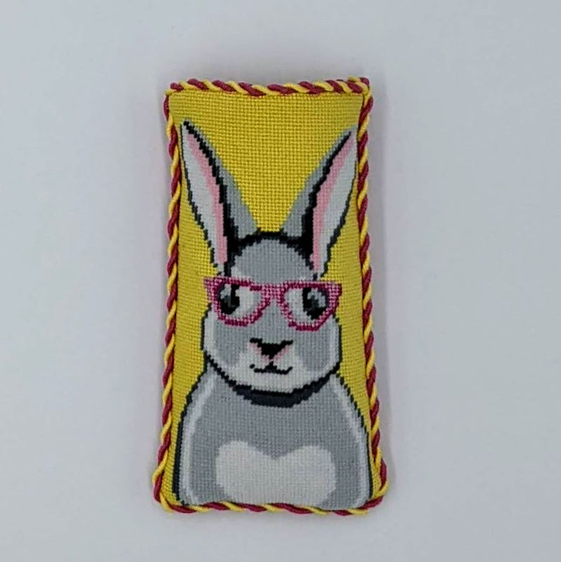 Add a whimsical touch to your accessories with the Bunny w. Glasses Eyeglass Case needlepoint canvas! This delightful design features an adorable bunny wearing glasses, making it the perfect case for your eyeglasses or sunglasses. Crafted on an 18 mesh canvas and measuring 3.5" x 6.5", this piece is ideal for stitching a fun and functional item that showcases your love for cute critters. Stitch this charming canvas and enjoy a stylish accessory that brings a smile to your face!