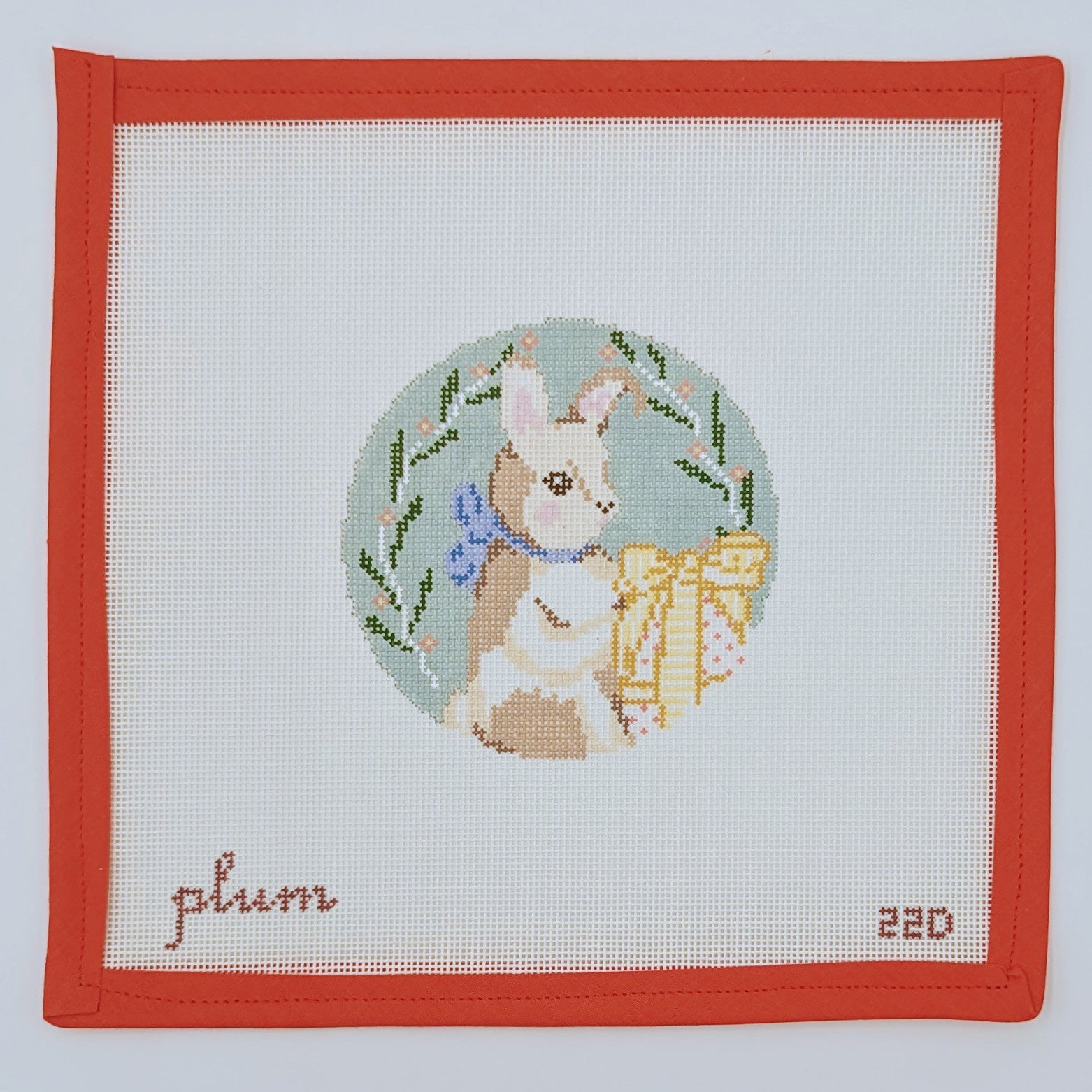 Welcome spring with the delightful Bunny w. Purple Bow needlepoint canvas! This adorable design features a cute bunny adorned with a charming purple bow, perfect for adding a playful touch to your Easter decor. Crafted on an 18 mesh canvas and measuring 4" round, this ornament is ideal for showcasing your stitching skills while celebrating the joy of the season. Stitch this lovely canvas and let it bring smiles to your home during the festive celebrations!