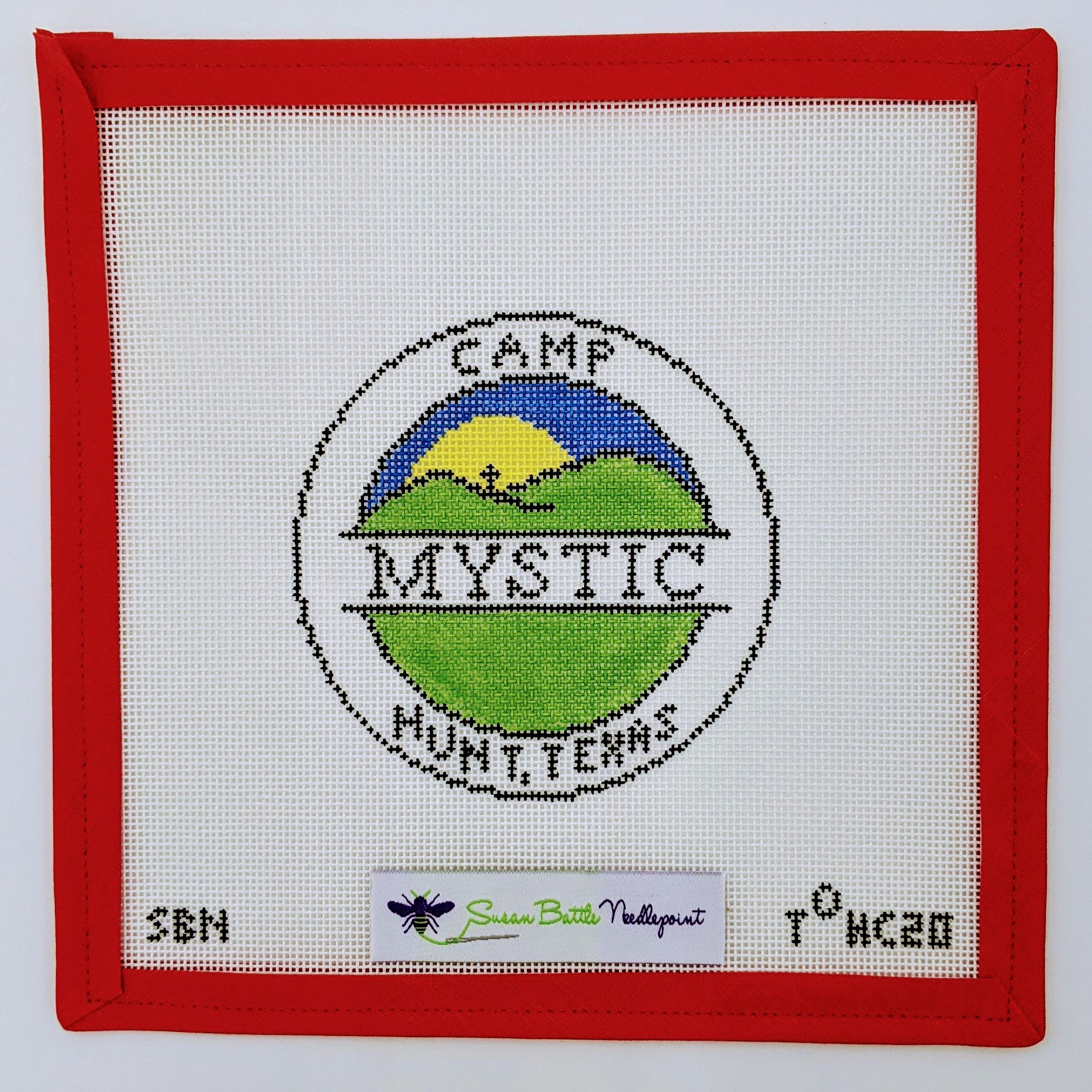 Show your camp spirit with this Camp Mystic (Texas) needlepoint canvas! Featuring the iconic camp logo, this 18-mesh canvas is perfect for creating a nostalgic ornament or keepsake. At approximately 4" round, it’s a fun and meaningful project for camp enthusiasts and stitchers alike.
