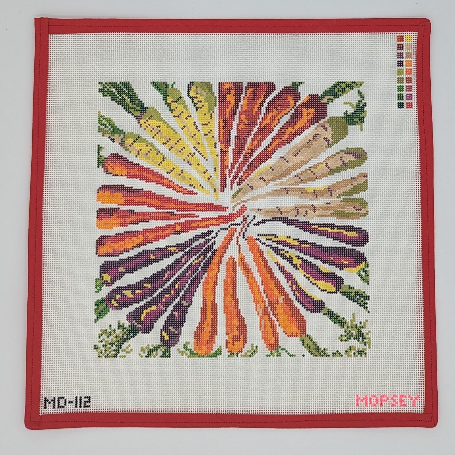 Bring a vibrant touch of nature into your home with the Carrots Mandala needlepoint canvas! This stunning design features an intricate mandala pattern centered around fresh carrots, perfect for adding a burst of color and creativity to your decor. Crafted on a 13 mesh canvas and measuring 10" square, this piece is ideal for stitching a decorative item that showcases your unique style. Stitch this captivating canvas and let it bring a cheerful, garden-inspired accent to any room!
