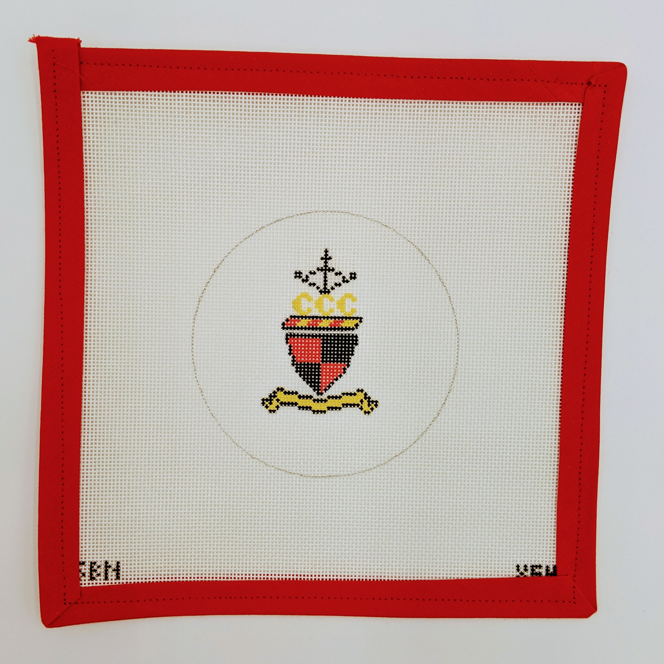 Showcase your love for Chevy Chase Club with the Chevy Chase Club round ornament needlepoint canvas! This elegant design captures the spirit of the iconic club, making it a perfect keepsake for members and alumni alike. Crafted on an 18 mesh canvas and measuring 4" round, this ornament is ideal for adding a touch of sophistication and school pride to your holiday decor. Stitch this charming canvas and celebrate your connection to the Chevy Chase community with style!