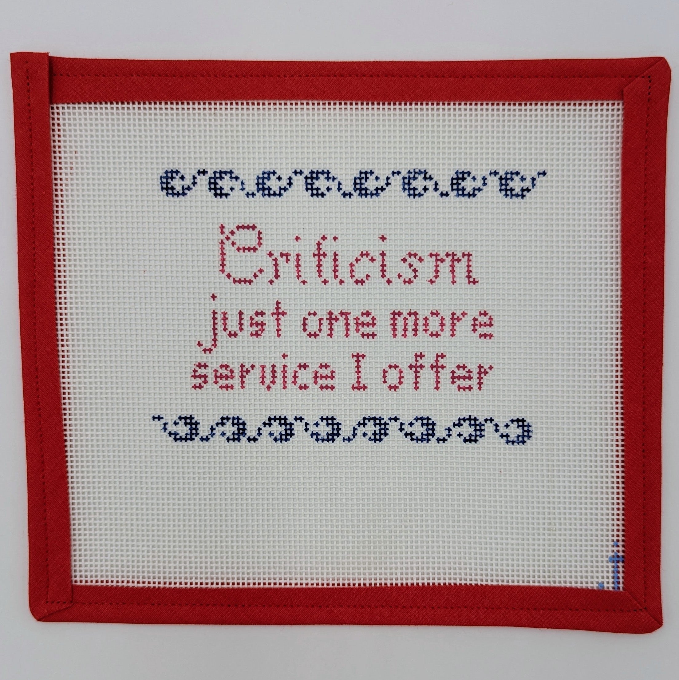 Get ready to express your unique voice with our wonderfully whimsical Criticism needlepoint canvas! This eye-catching design is perfect for anyone who loves to weave their thoughts into beautiful art. With its bold colors and playful imagery, this 13-mesh canvas makes for an exceptional piece that can be transformed into a quirky decorative item or a fun gift for a friend who appreciates a good laugh. Grab your needle and thread, and let's stitch your opinion in style!