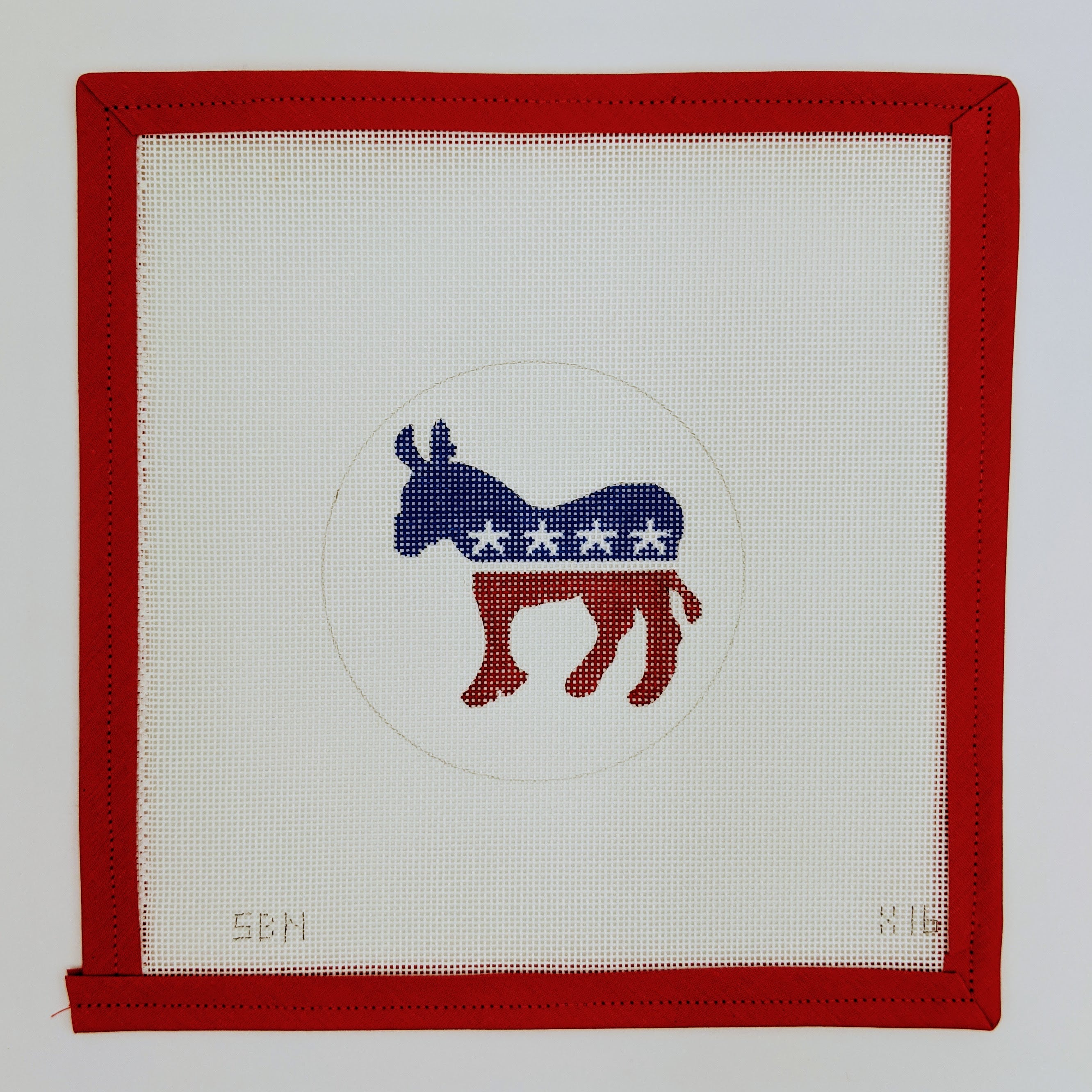 Show your political pride with this Democratic Donkey Ornament needlepoint canvas! Featuring the iconic Democratic donkey, this 18-mesh canvas is perfect for creating a festive ornament or decorative piece. At approximately 4" round, it’s a timely and meaningful project for stitchers.