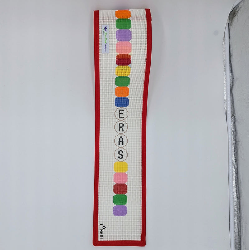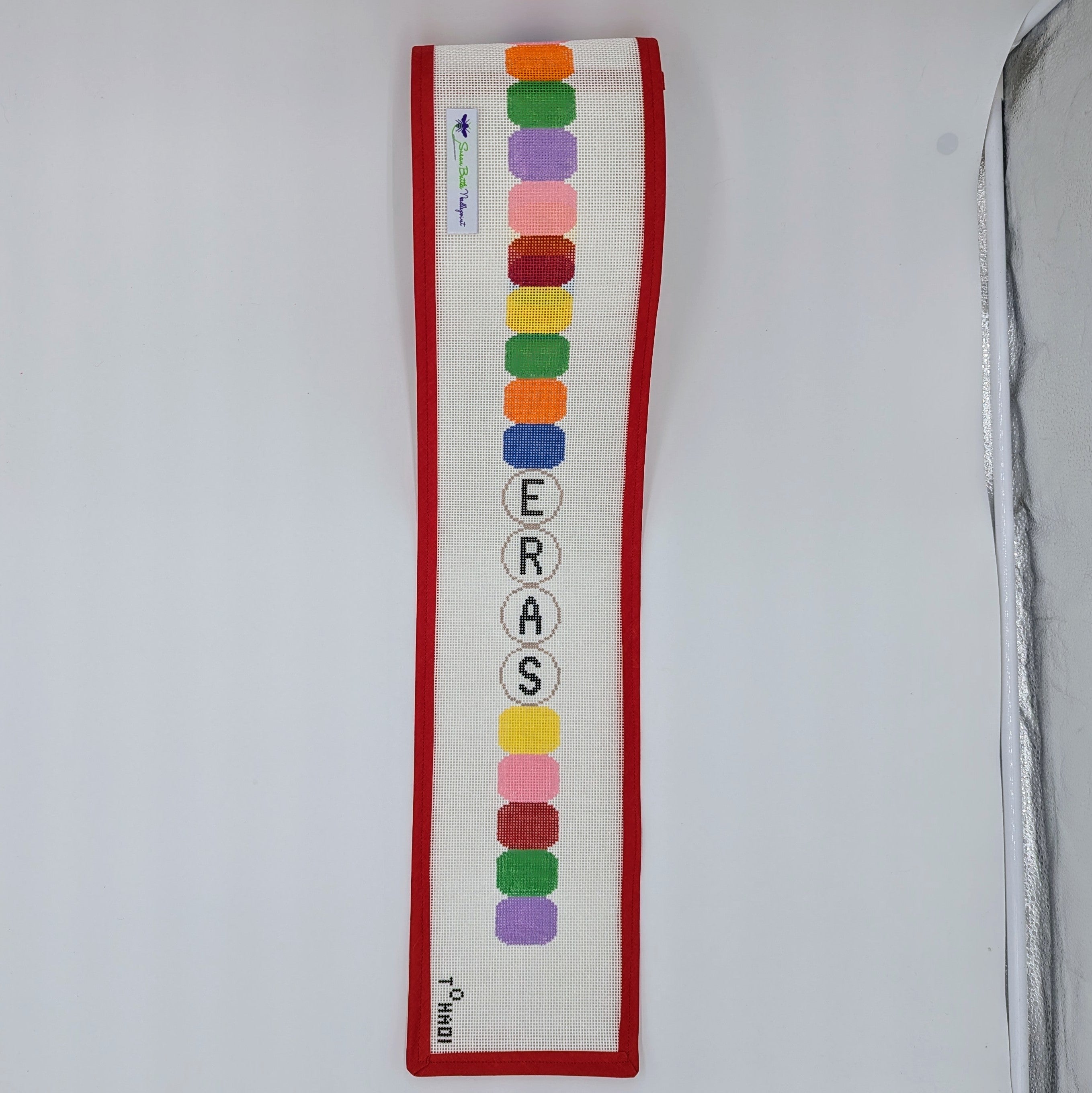 Show off your style with the Eras Tour Bag Strap needlepoint canvas! This trendy design is perfect for fans who want to add a personalized touch to their bag with a unique strap. Crafted on a 13 mesh canvas and measuring 42" x 2", this piece is ideal for stitching a standout accessory that complements your favorite bag. Stitch this delightful canvas and let it reflect your individuality and flair wherever you go!