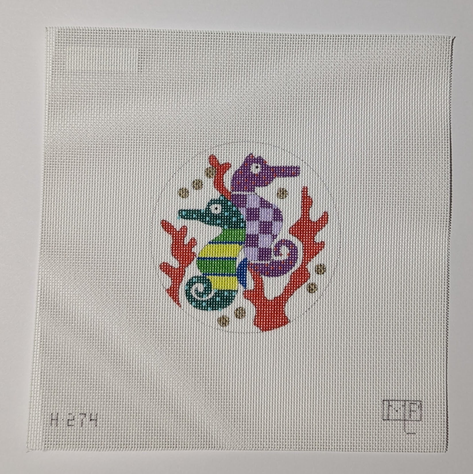 Dive into the underwater world of whimsy with our delightful Frolicking Seahorses needlepoint canvas! Featuring a pair of playful seahorses dancing among colorful coral, this 18-mesh canvas brings oceanic charm to your stitching adventures. Measuring approximately 4" round, it’s a perfect project for creating a cheerful ornament or a vibrant decorative piece that’s sure to make a splash. So grab your fibers and let’s make some stitching magic happen! 🌊🐚