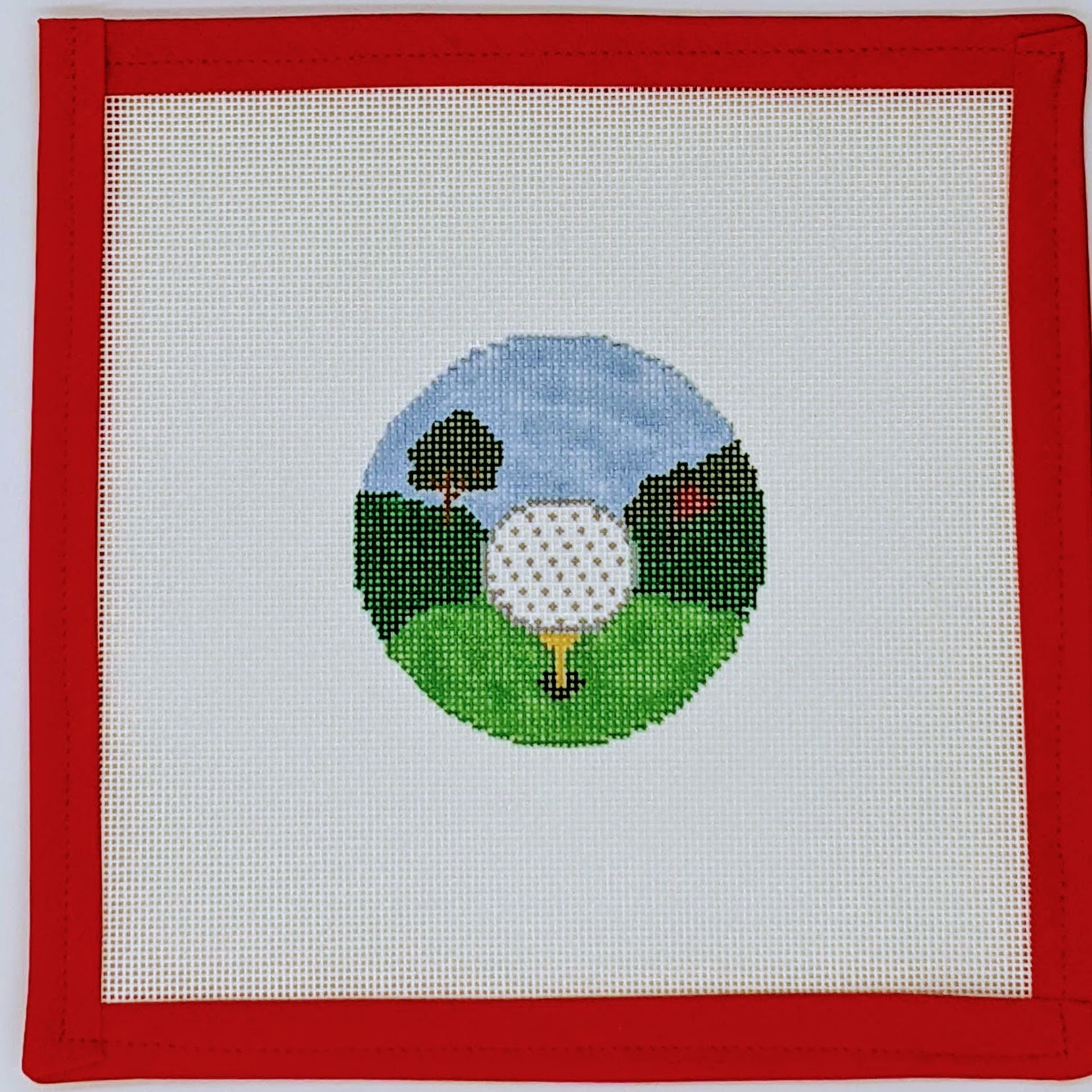 Par-tee time with our charming Golf Ball Scene needlepoint canvas! Featuring a delightful round design that captures the spirit of a fun day on the greens, this 18-mesh canvas is perfect for crafting a fun ornament or accent piece for golf enthusiasts. With its compact size of approximately 3" round, it's an ideal stitch for beginners and seasoned stitchers alike. Get ready to tee off your stitching journey or gift this to your favorite golfer!