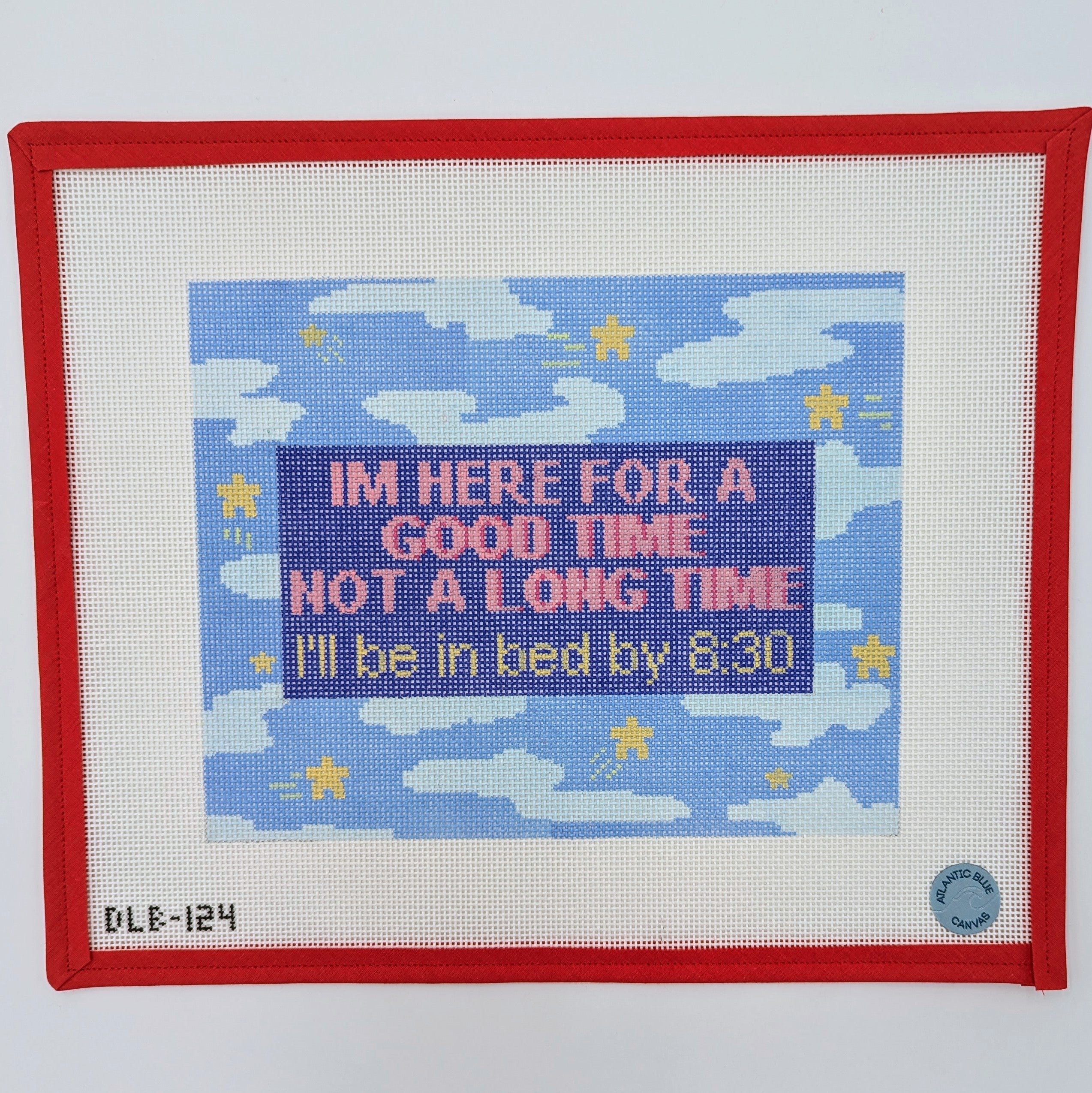 Add a fun and carefree vibe to your decor with the Good Time, Not a Long Time needlepoint canvas! This lighthearted design perfectly captures the joy of living in the moment, making it a great addition to any space. Crafted on a 13 mesh canvas and measuring 10” x 8”, this piece is ideal for stitching a decorative item that showcases your personality and zest for life. Stitch this lively canvas and let it bring a smile to your face and a touch of positivity to your home!