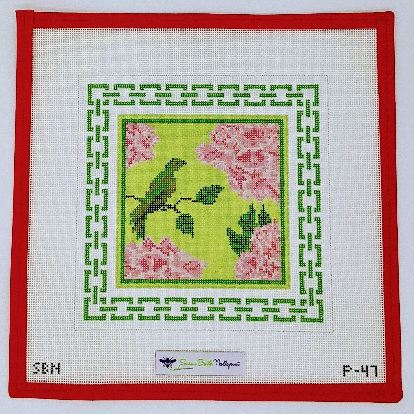 This elegant Green Bird & Peonies needlepoint canvas showcases a delicate bird perched among lush peonies, framed by a complementary green border. Perfect for nature lovers and floral enthusiasts, this timeless design brings a touch of sophistication and charm to any needlepoint collection. Ideal for pillows, wall decor, or a thoughtful handmade gift.