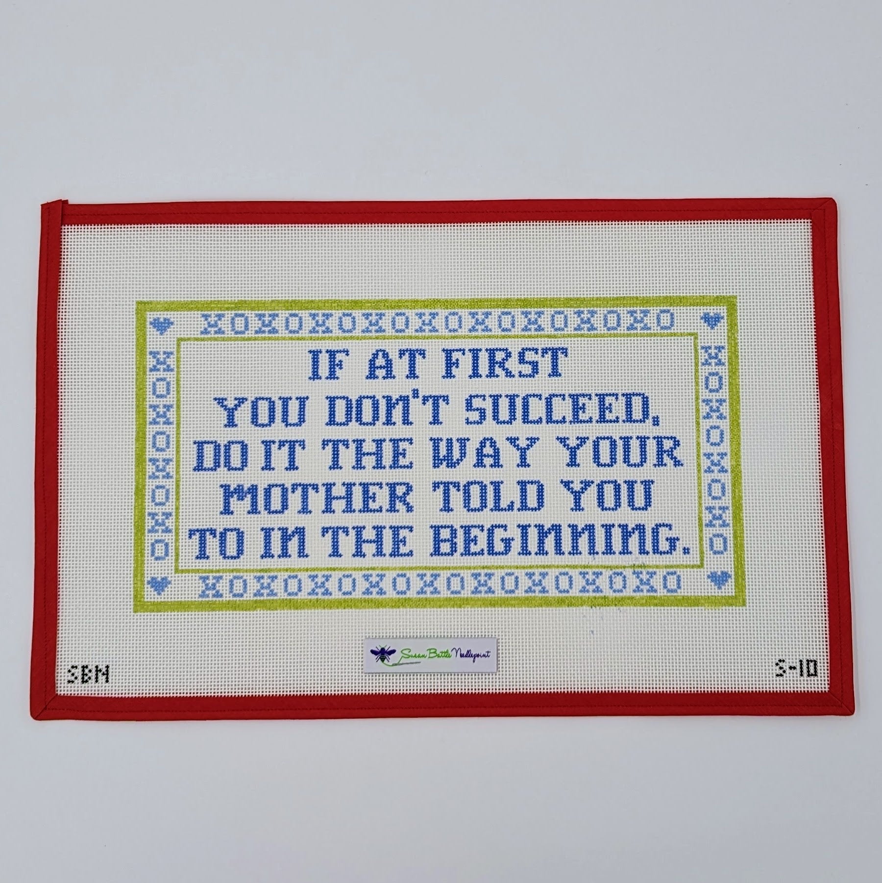 Add a humorous touch to your decor with the If At First...Mother needlepoint canvas! This playful design captures a witty sentiment that is perfect for celebrating the joys and challenges of motherhood. Crafted on a 13 mesh canvas and measuring 14" x 7", this piece is ideal for stitching a decorative item that showcases your personality and appreciation for all the hard work moms do. Stitch this delightful canvas and let it bring smiles and laughter to your home!
