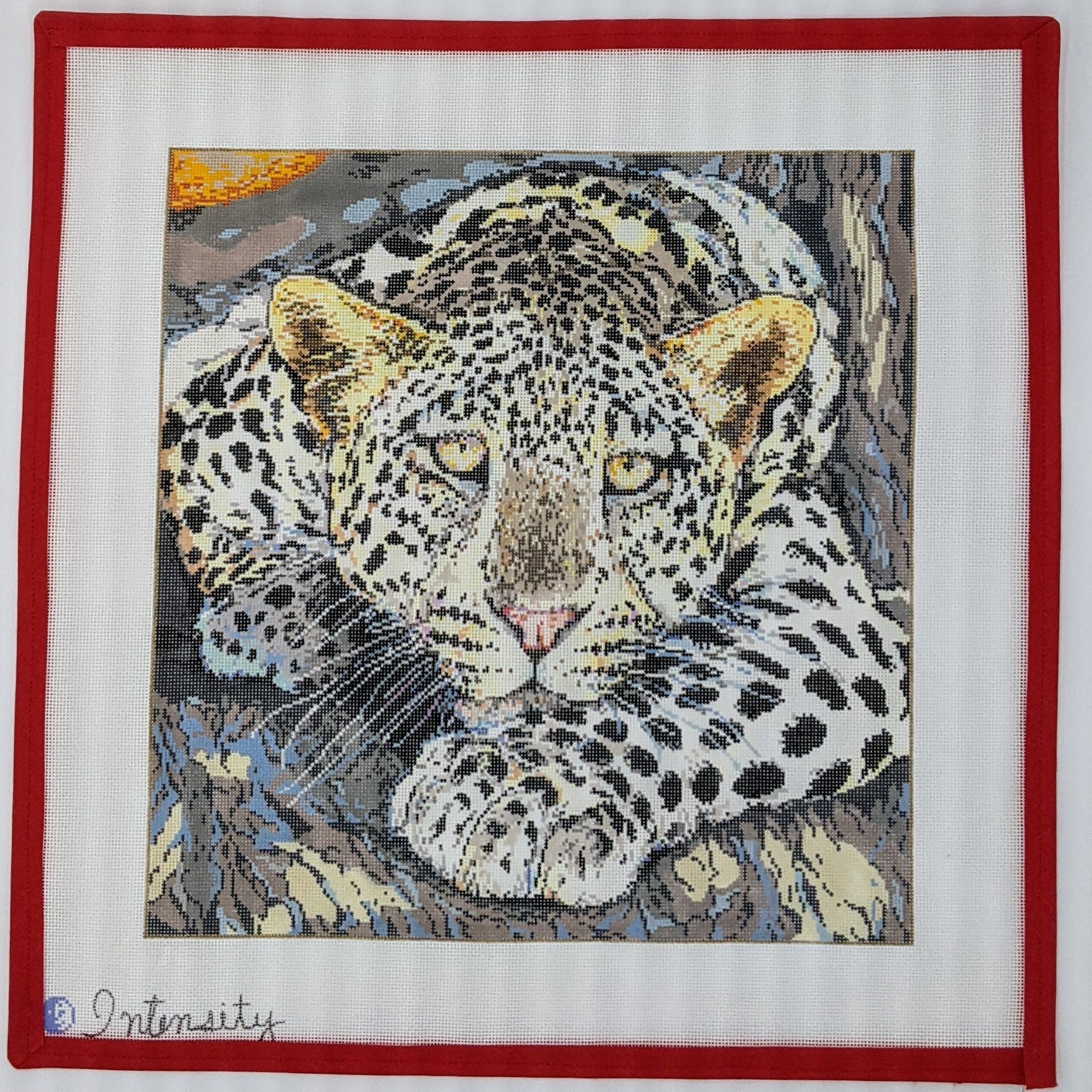 Introduce a touch of wild beauty to your decor with the "Intensity" Leopard Crouching needlepoint canvas! This striking design features a majestic leopard in a crouching position, perfectly capturing its graceful power and elegance. Crafted on an 18 mesh canvas and measuring 12.5" x 13", this project offers ample space for stitching fine details that bring this magnificent creature to life. Whether you display it in your home or gift it to an animal lover, this canvas is sure to make a bold statement!