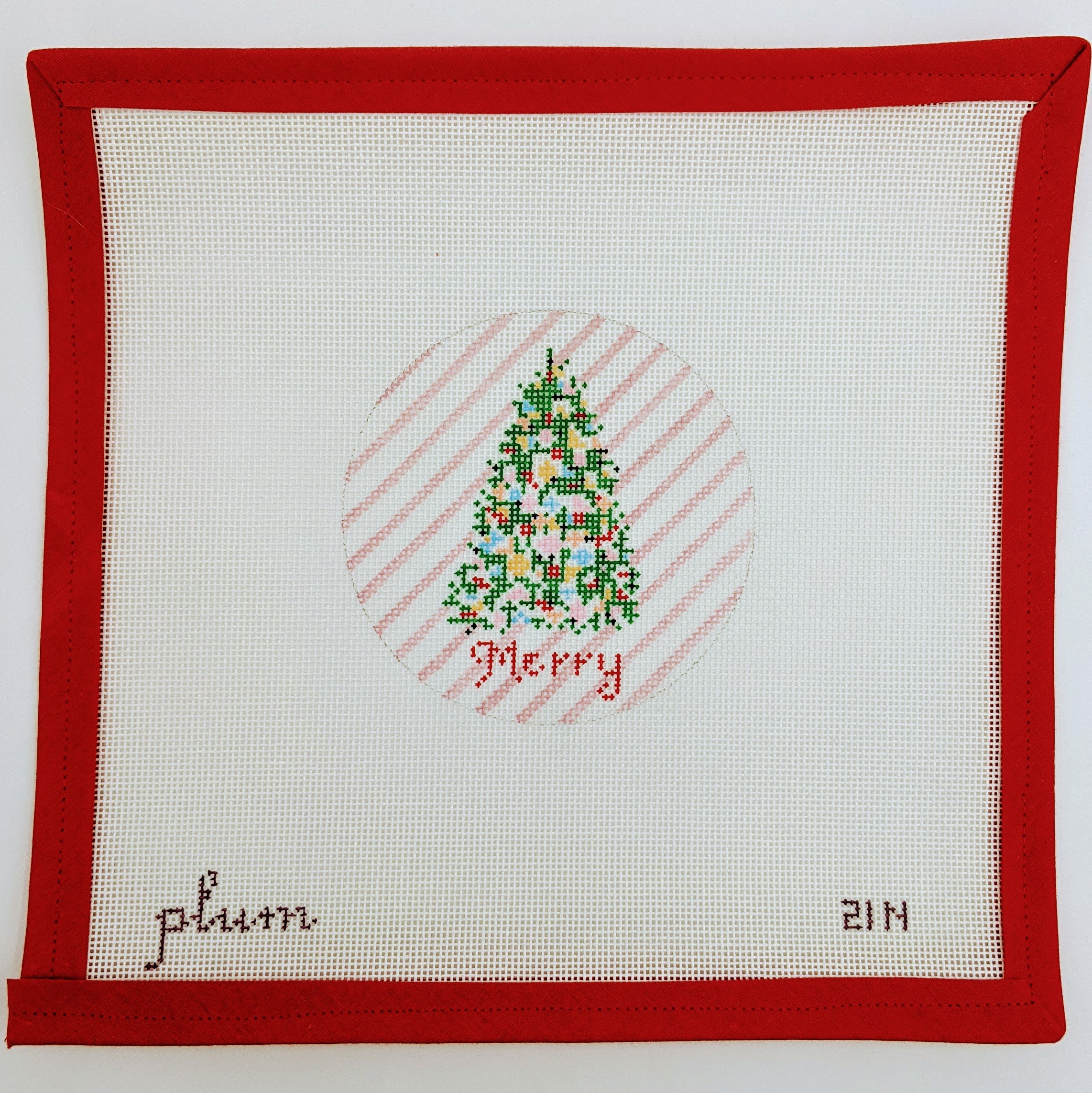 Spread holiday cheer with the Merry needlepoint canvas! This delightful design features a festive and cheerful message, making it the perfect addition to your Christmas decor. Crafted on an 18 mesh canvas and measuring 4" round, this ornament is ideal for showcasing your stitching skills while celebrating the spirit of the season. Stitch this joyful piece to hang on your tree or gift to someone special, and let the merriment begin!