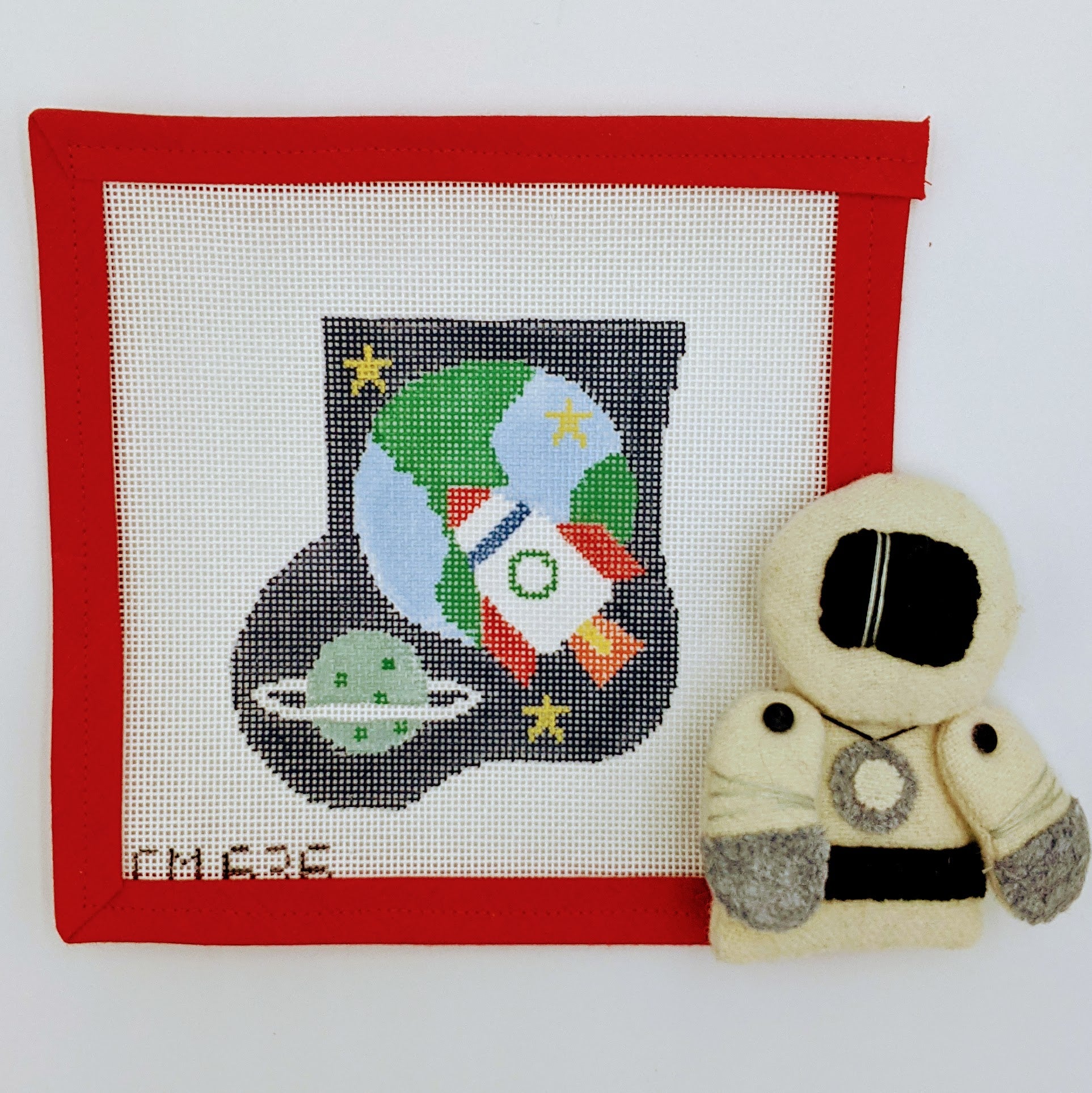 Blast off into creativity with the Spaceship and Astronaut + Stuffie needlepoint canvas! This fun and whimsical design features an adventurous astronaut alongside a playful spaceship, perfect for young explorers and space enthusiasts. Crafted on an 18 mesh canvas, this piece is ideal for stitching a delightful decorative item that captures the wonder of space exploration. Stitch this charming canvas and let it add an out-of-this-world touch to your decor or serve as a fun gift for a budding astronaut!