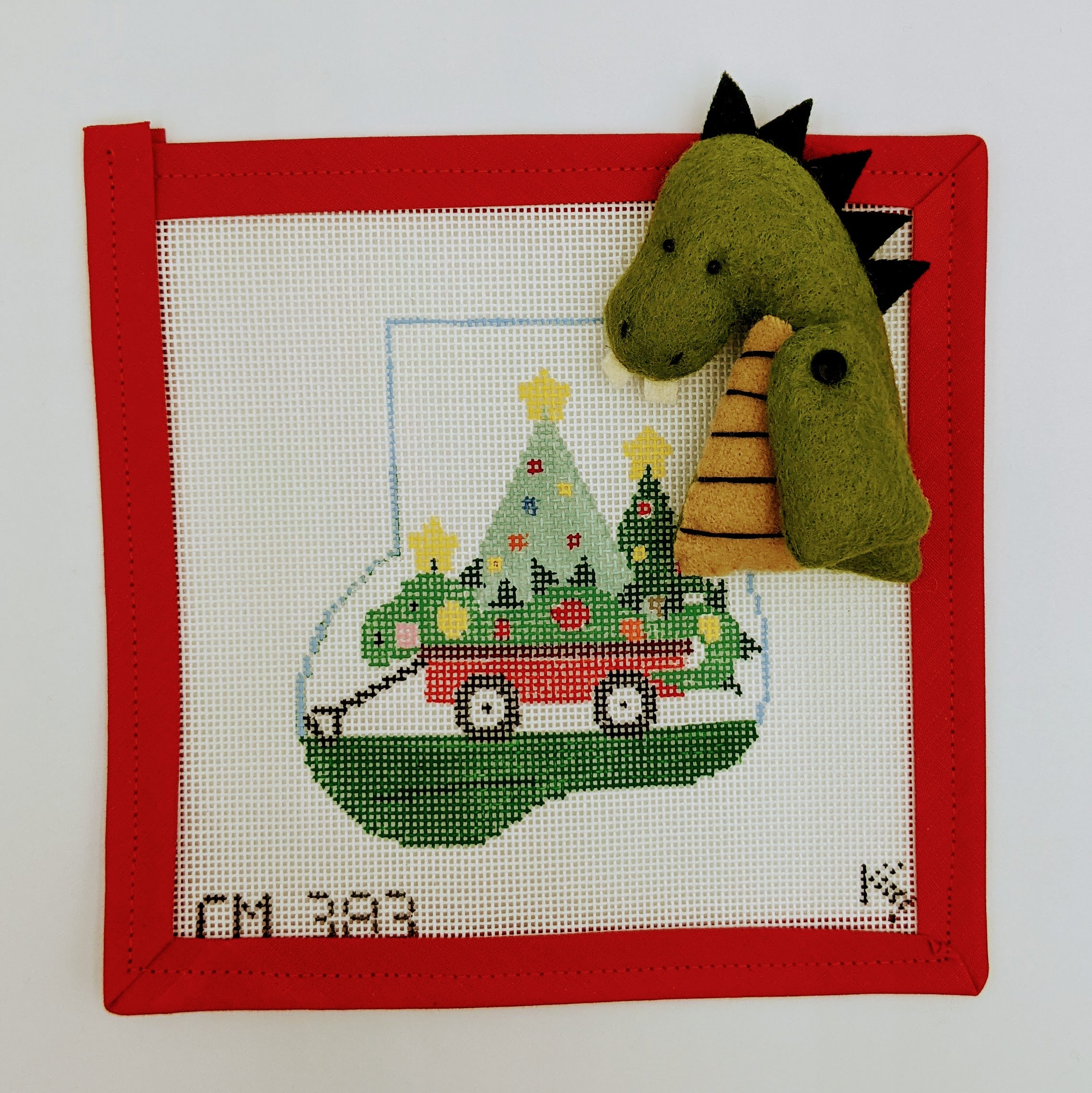 Bring a whimsical touch to your holiday decor with the Christmas Dragon in Wagon + Stuffie needlepoint canvas! This enchanting design features a delightful dragon pulling a festive wagon, perfect for adding a unique and playful flair to your Christmas celebrations. Crafted on an 18 mesh canvas, this piece is ideal for stitching a charming decorative item that showcases your creativity and love for fantasy. Stitch this delightful canvas and let it brighten your holiday spirit or serve as a wonderful gift for a dragon lover!