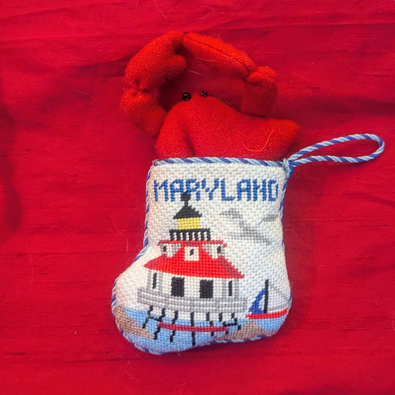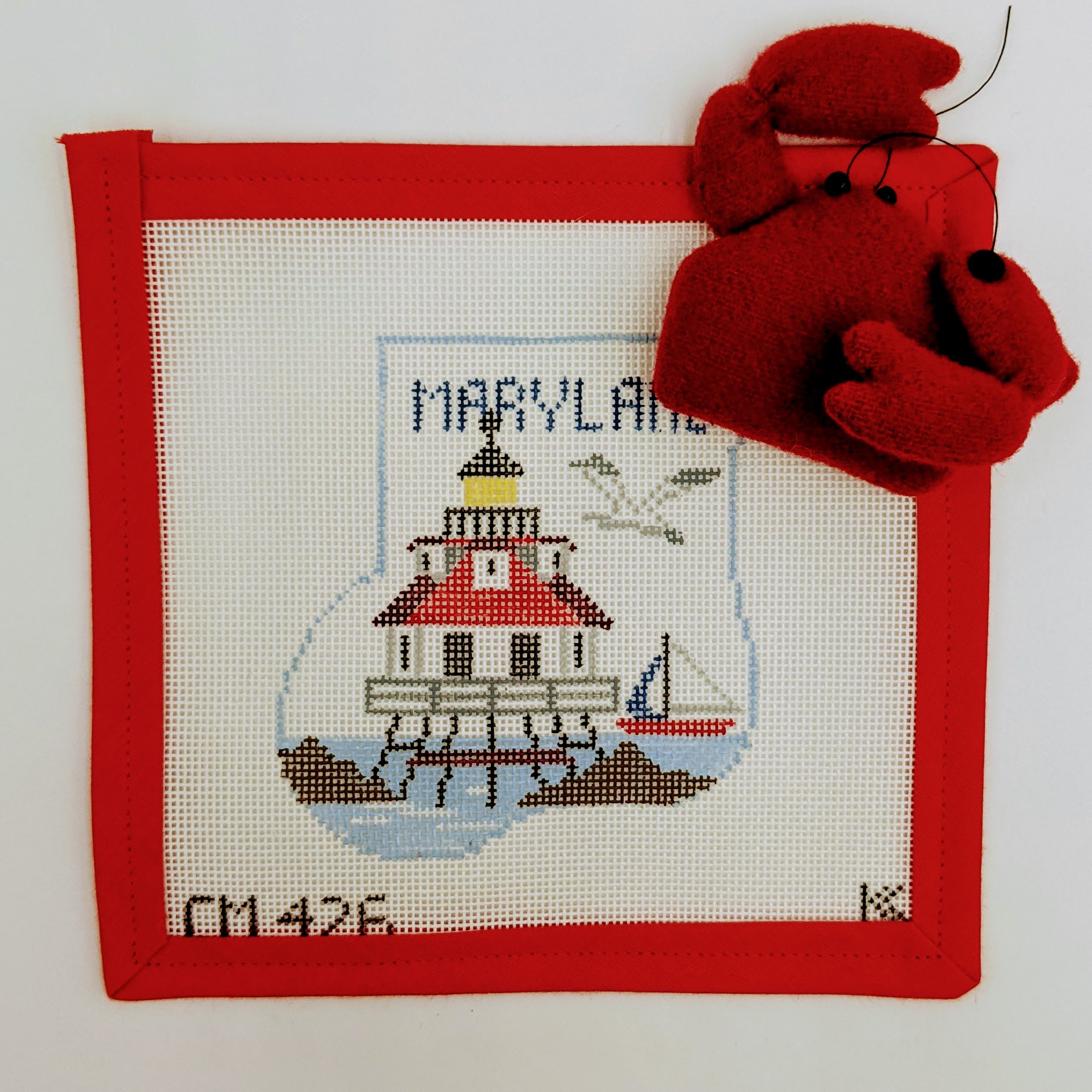 Celebrate the coastal charm of Maryland with the Maryland Lighthouse and Crab + Stuffie needlepoint canvas! This delightful design features a picturesque lighthouse alongside an adorable crab, perfectly capturing the beauty of seaside life. Crafted on an 18 mesh canvas, this piece is ideal for stitching a fun decorative item that showcases your love for Maryland's waterfront and its rich culture. Stitch this enchanting canvas and let it bring a splash of the bay into your home or serve as a wonderful gift for a fellow beach lover!