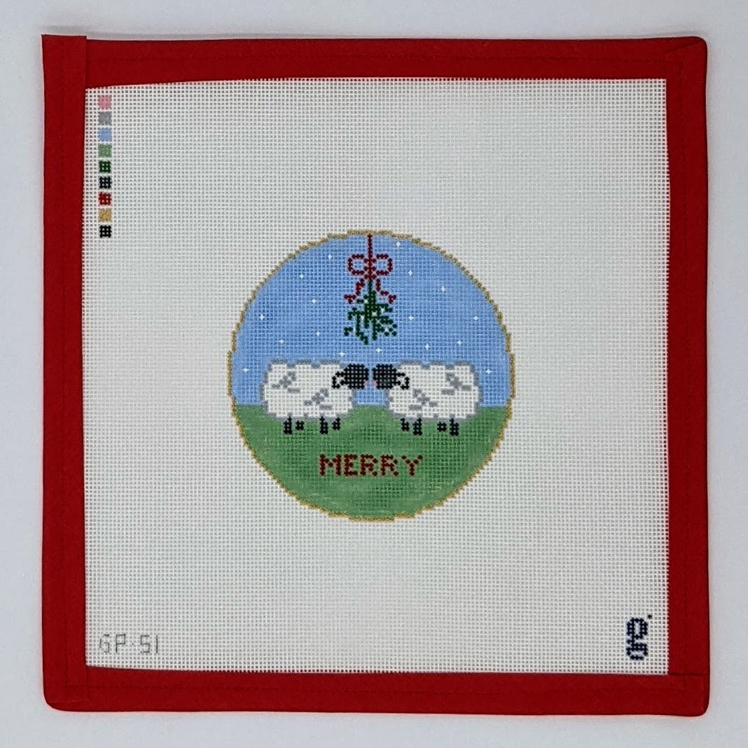 Bring a whimsical touch to your holiday decor with the Mistletoe Sheep needlepoint canvas! This adorable design features a charming sheep decorated with mistletoe, perfect for celebrating the joy and magic of the Christmas season. Crafted on an 18 mesh canvas and measuring 4" round, this ornament is ideal for showcasing your stitching skills while adding a festive flair to your home. Stitch this delightful canvas to hang on your tree or gift it to a fellow sheep lover!