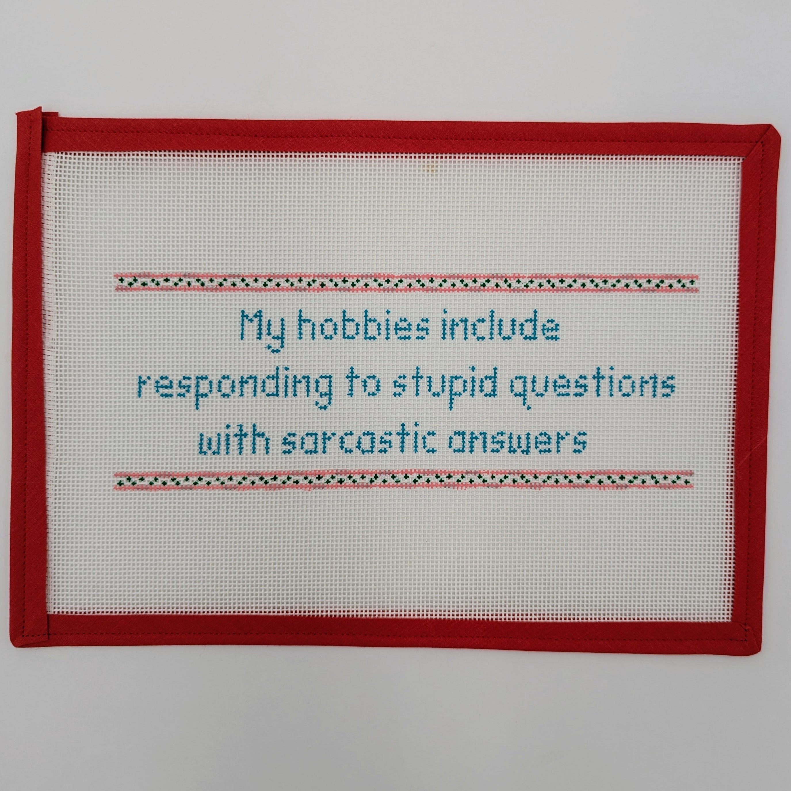 Spread a little joy with our charming My Hobbies Include needlepoint canvas! Designed with a whimsical touch, this 13-mesh canvas beautifully showcases a playful array of hobbies that will inspire creativity and spark joy in every stitch. Measuring approximately 9.5" x 3.5", it’s a delightful piece perfect for decorating your crafting space or giving as a thoughtful gift to a fellow hobbyist. Grab your threads and let the stitching fun begin!