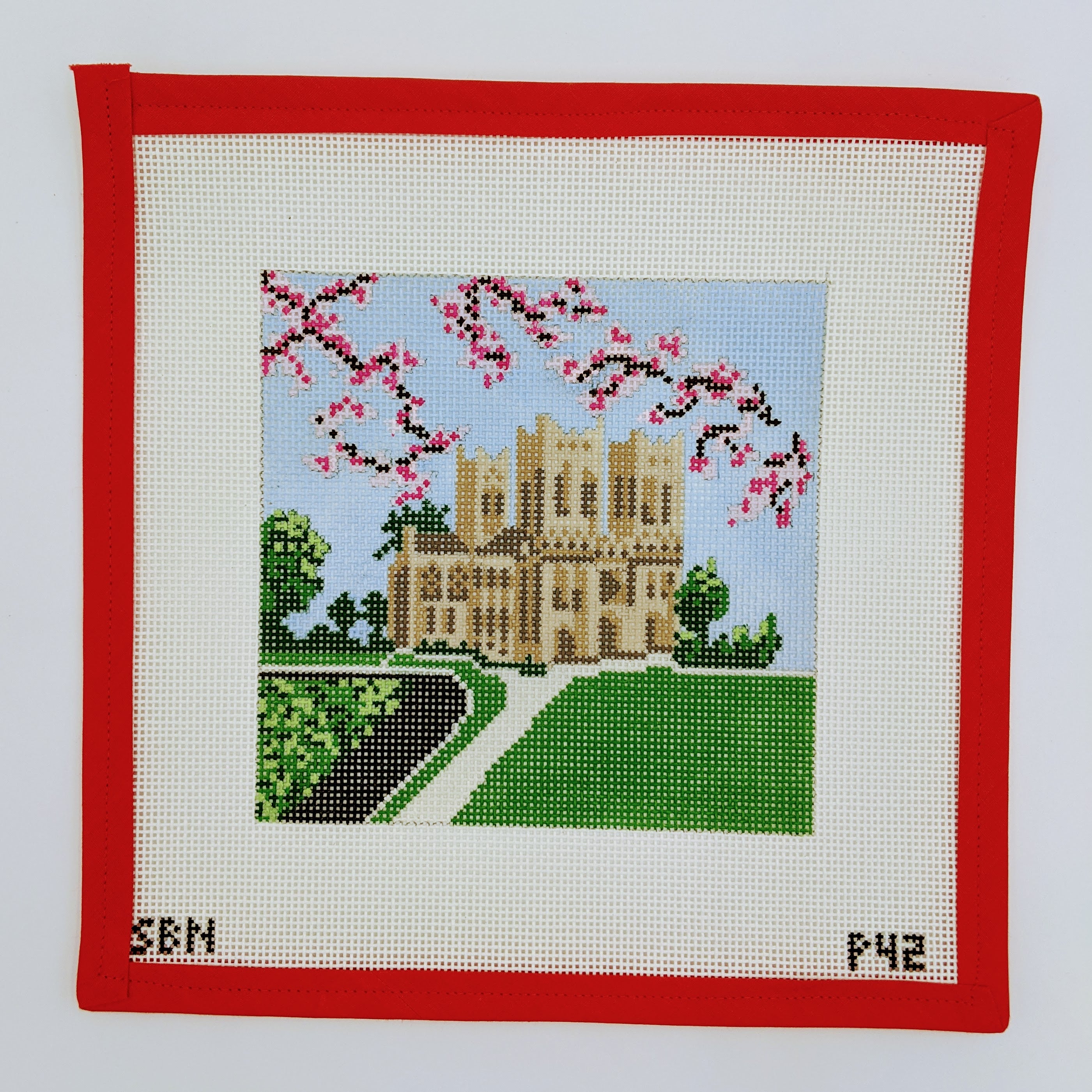 Immerse yourself in the beauty of spring with our Natl Cathedral w/Cherry Blossoms Pillow needlepoint canvas! This enchanting design beautifully captures the elegance of the National Cathedral adorned with iconic cherry blossoms, bringing a touch of Washington, D.C.'s seasonal charm into your home. Crafted on a 13 mesh canvas, this delightful project measures 6.25" x 6.25" and is perfect for creating a decorative pillow that will brighten any room. Whether you're a seasoned stitcher or a beginner, this canvas offers a splendid way to showcase your love for the capital's breathtaking scenery.