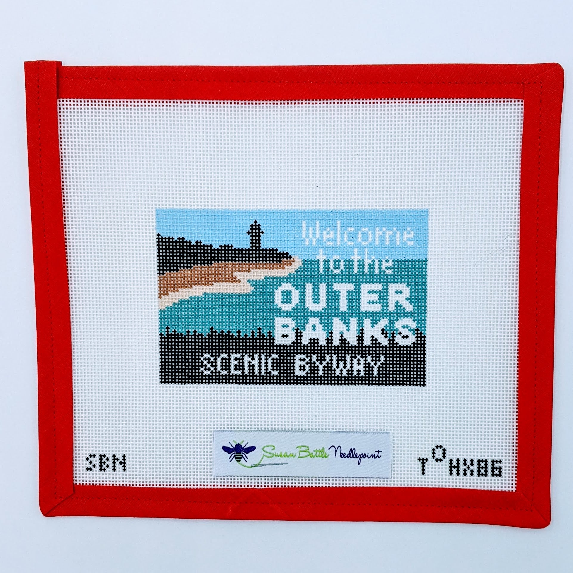 Celebrate coastal charm with this Outer Banks needlepoint canvas! Featuring a classic design inspired by the beloved beach destination, this 18-mesh canvas is perfect for creating a nostalgic ornament or decorative piece. At approximately 4.25" x 3", it’s a must-stitch for beach lovers.