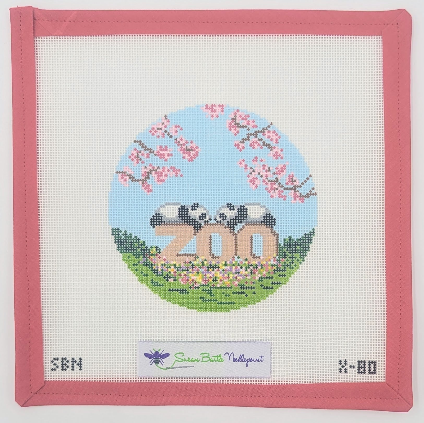 Celebrate the beauty of nature with this charming Pandas & Zoo with Cherry Blossoms needlepoint canvas! Featuring adorable pandas and cherry blossoms, this 18-mesh canvas is perfect for creating a unique ornament or decorative piece. At approximately 4.5" round, it’s a quick and enjoyable project for stitchers of all levels. Whether you’re stitching it for yourself or gifting it to a fellow animal lover, this canvas is sure to delight!