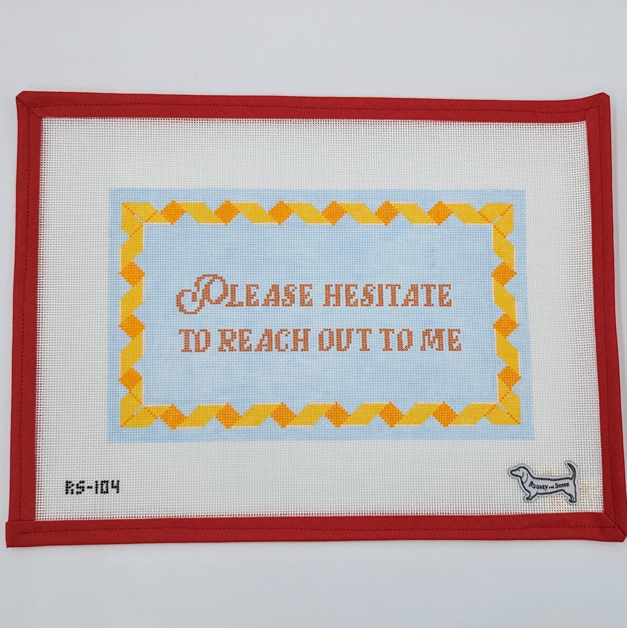 Add a humorous twist to your space with the Please Hesitate needlepoint canvas! This witty design features a playful sentiment that resonates with anyone who enjoys a cheeky take on life. Crafted on an 18 mesh canvas and measuring 9" x 6", this piece is ideal for stitching a decorative item that showcases your personality and sense of humor. Stitch this delightful canvas and let it bring a smile to your space!