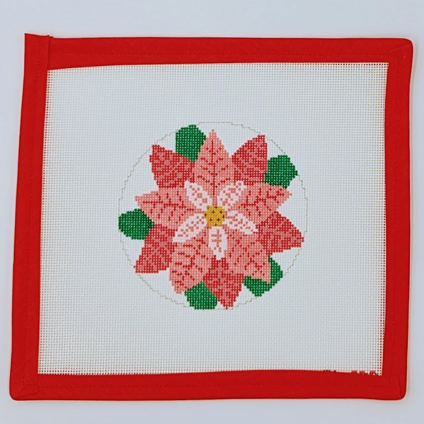 Celebrate the beauty of the holiday season with the Poinsettia Round needlepoint canvas! This vibrant design showcases a stunning poinsettia, capturing the essence of festive cheer and making it a perfect addition to your Christmas decor. Crafted on an 18 mesh canvas and measuring 4" round, this ornament is ideal for showcasing your stitching talents while brightening up your holiday celebrations. Stitch this delightful canvas and hang it proudly on your tree or gift it to a loved one!