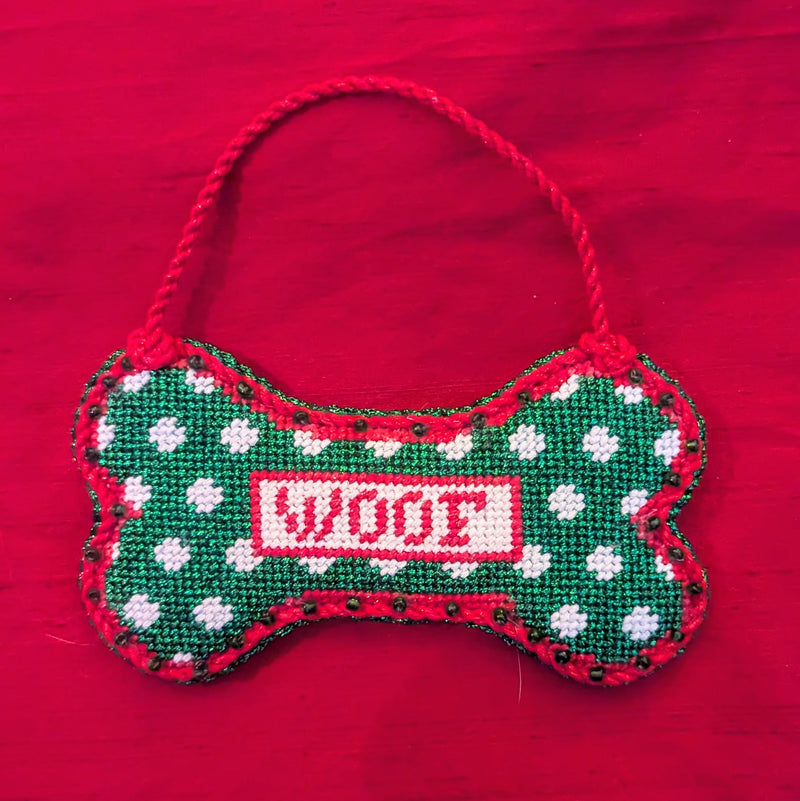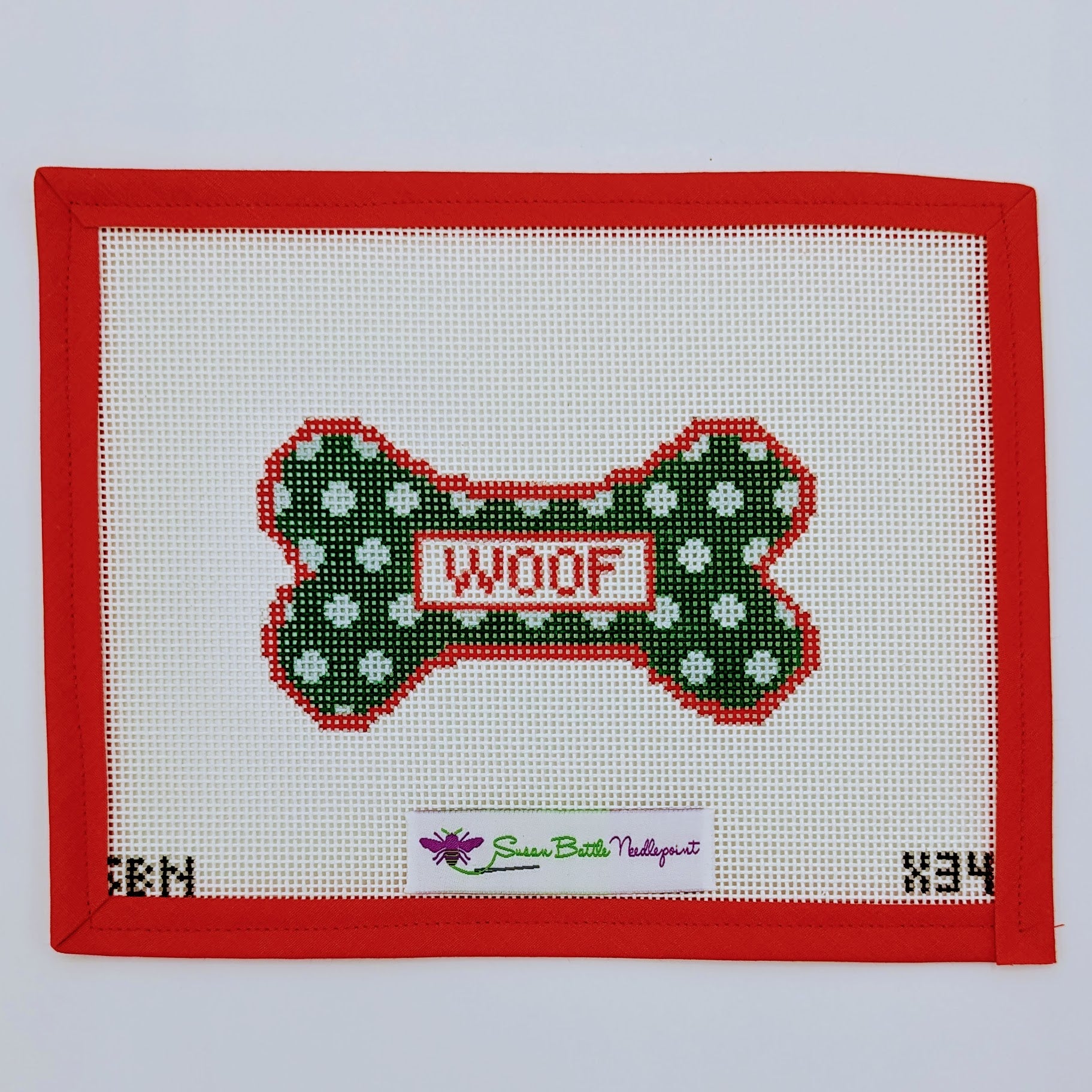 Celebrate your love for dogs with the WOOF Polka Dot Dog Bone ornament needlepoint canvas! This adorable design combines whimsy and fun, featuring a playful dog bone adorned with vibrant polka dots. Crafted on a 13 mesh canvas and measuring approximately 5" x 2.75", this ornament is perfect for adding a splash of color to your holiday decor or as a delightful gift for fellow dog lovers. Stitch this charming piece and let it brighten up any space with your canine spirit!