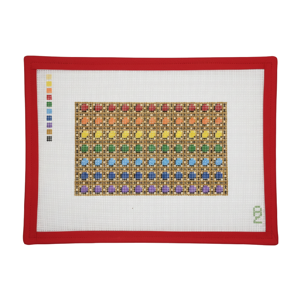 Bring a pop of color to your everyday essentials with our delightful Rainbow Cane Eye Glass Case needlepoint canvas! This vibrant design features a whimsical rainbow cane pattern that’s sure to brighten your day while protecting your stylish eyewear. Measuring approximately 7" x 4" and featuring a 13-mesh count, it's the perfect blend of fun and functionality for stitchers looking to add a splash of joy to their stitching project or gift it to a friend who loves all things colorful. Get ready to stitch and celebrate those sunny vibes!