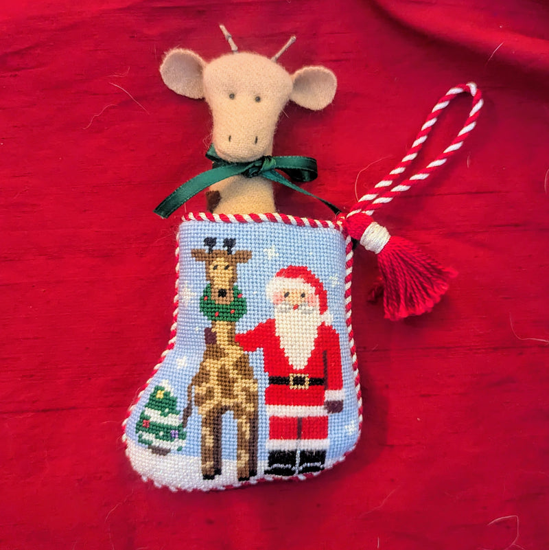 Bring a delightful twist to your holiday decor with the Santa with Giraffe + Stuffie needlepoint canvas! This enchanting design features Santa alongside an adorable giraffe, perfect for adding a whimsical touch to your Christmas celebrations. Crafted on an 18 mesh canvas, this piece is ideal for stitching a unique decorative item that showcases your creativity and love for the festive season. Stitch this charming canvas and let it bring joy and laughter to your home!