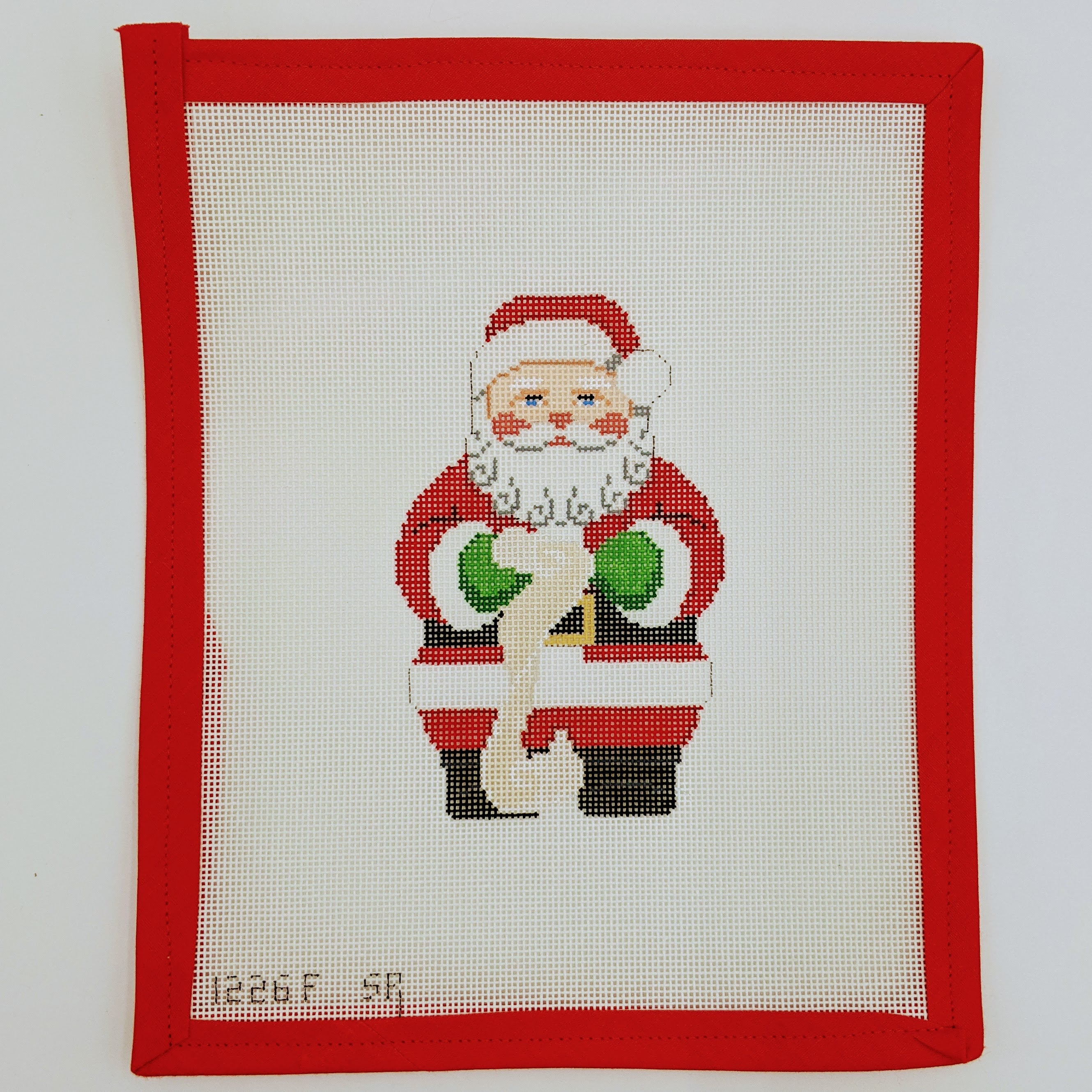 Get into the festive spirit with the Santa with List needlepoint canvas! This charming design features Santa checking his list, showcasing the magic of the holiday season. Crafted on an 18 mesh canvas, this project offers the perfect opportunity for intricate stitching that brings this lovable character to life. Whether you use it to create a holiday decoration or gift it to a Christmas enthusiast, this canvas is sure to spread joy and holiday cheer!