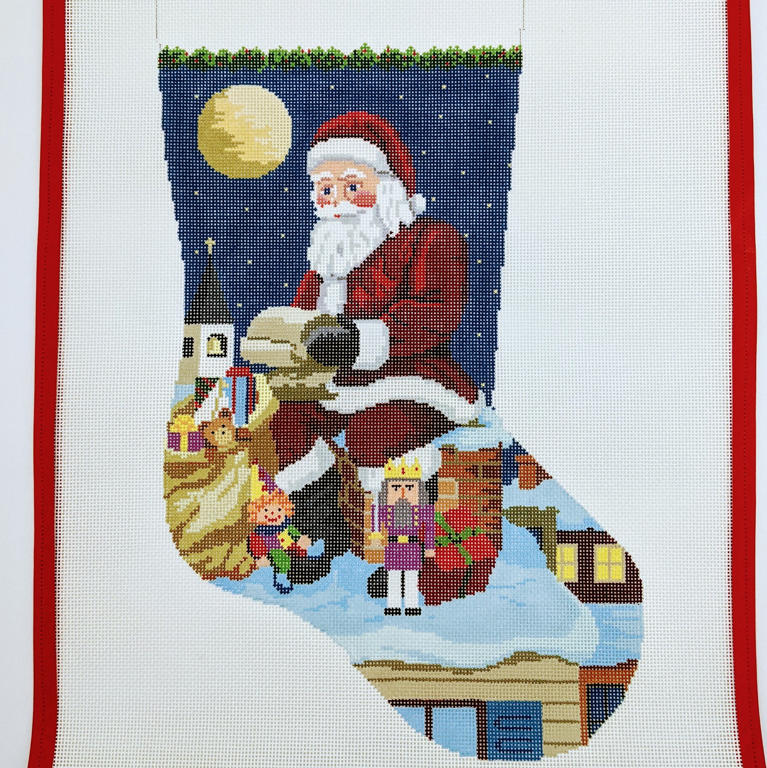 Get into the festive spirit with the charming Santa Reading List on Chimney Stocking needlepoint canvas! This whimsical design features jolly old Saint Nick joyfully reading his list while nestled atop a cozy chimney, creating a delightful holiday scene that will warm every stitcher's heart. Perfect for crafting an enchanting ornament or a cheerful decoration that spreads joy throughout the season. So grab your needle and thread, and let's bring this delightful design to life!
