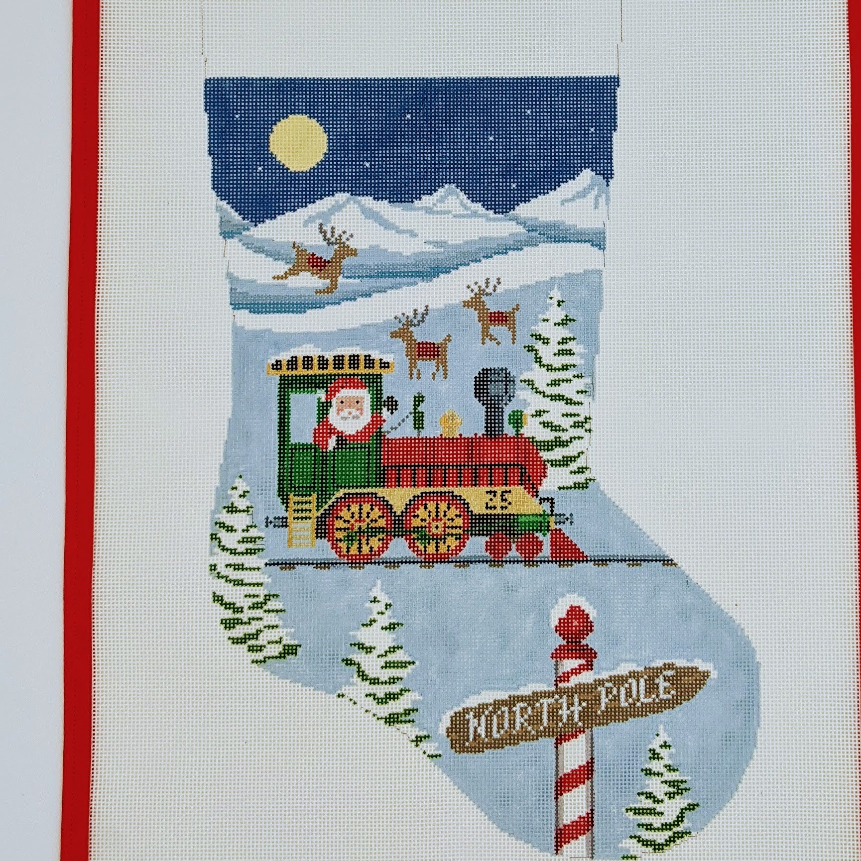 Bring the magic of the holidays to your home with the Santa's Train Engine Stocking needlepoint canvas! This enchanting design features Santa joyfully riding a train, perfect for capturing the excitement of Christmas. Crafted on a 13 mesh canvas and designed as a full-sized stocking, this piece is ideal for stitching a delightful decoration that will be cherished for years to come. Stitch this charming canvas and let it become a beloved part of your holiday traditions!
