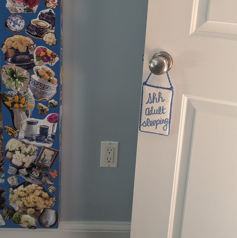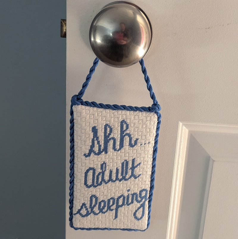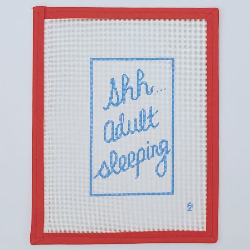 Embrace the tranquility of a peaceful slumber with our delightful Shhh...Adult Sleeping needlepoint canvas! This enchanting design captures the serene beauty of a sleeping adult, making it an ideal project for any stitcher looking to create a cozy ornament or a charming decorative piece for their home. With its soothing imagery and delightful details, this canvas is sure to inspire relaxation and creativity in your stitching journey!