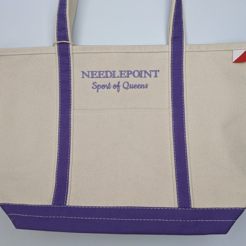Set sail towards your next crafting adventure with the stylish and practical Sport of Queens Purple Boat Tote! This vibrant tote combines chic design with functionality, making it a must-have for any stitcher on the go. With its spacious interior and handy pockets, you can store your needlepoint supplies safely while making a fabulous statement wherever you carry it. Get ready to show off your stitching flair and take your supplies for a ride!