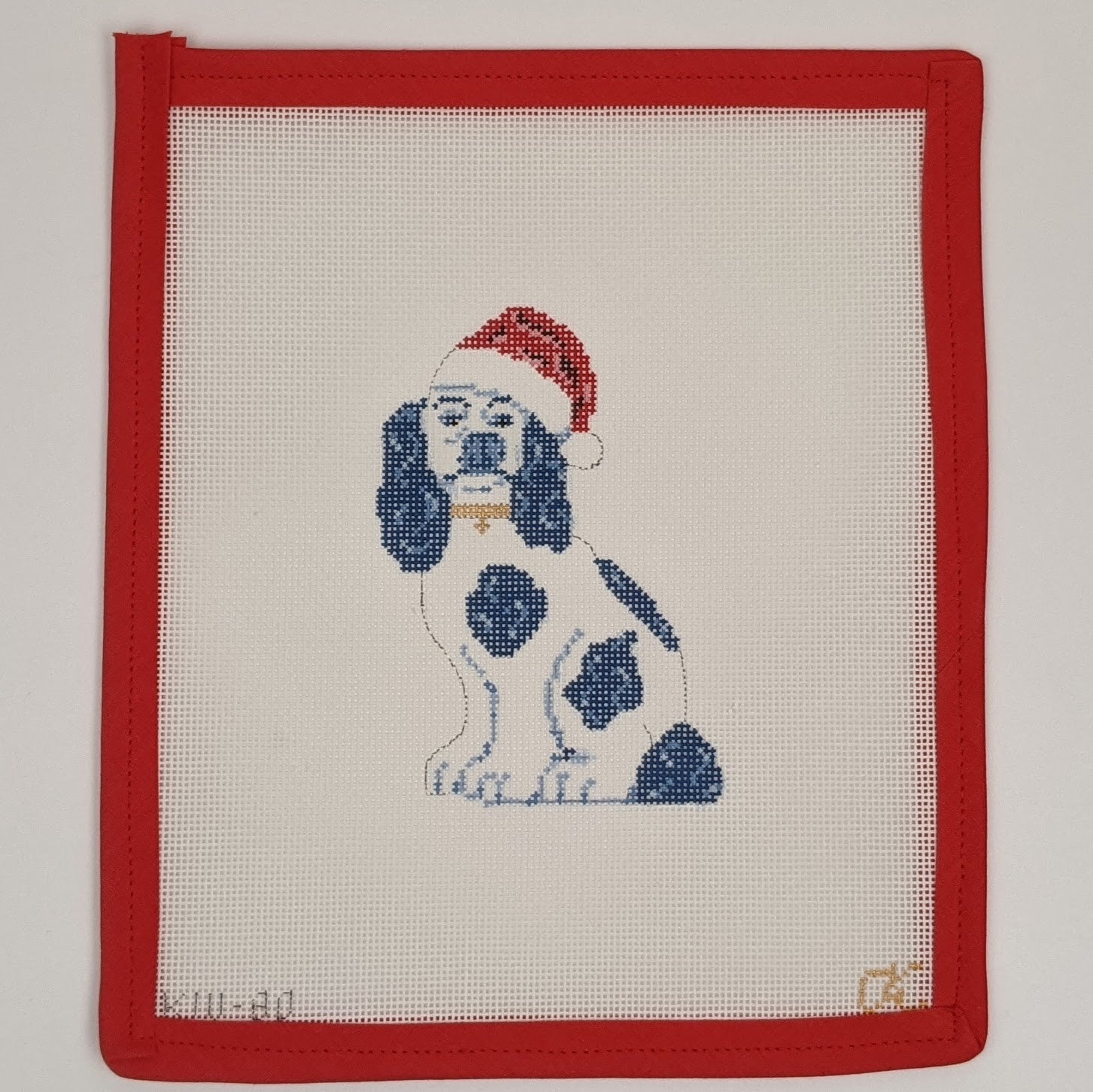 Get ready to spread some holiday cheer with this adorable Staffie w. Santa Hat needlepoint canvas! This joyful design showcases a lovable Staffordshire Bull Terrier donning a festive Santa hat, making it the perfect piece to create delightful ornaments or charming decorative items this holiday season. Ideal for stitchers looking to capture the spirit of Christmas, this canvas promises to bring smiles and warmth to your home or as a wonderful gift for a dog lover.