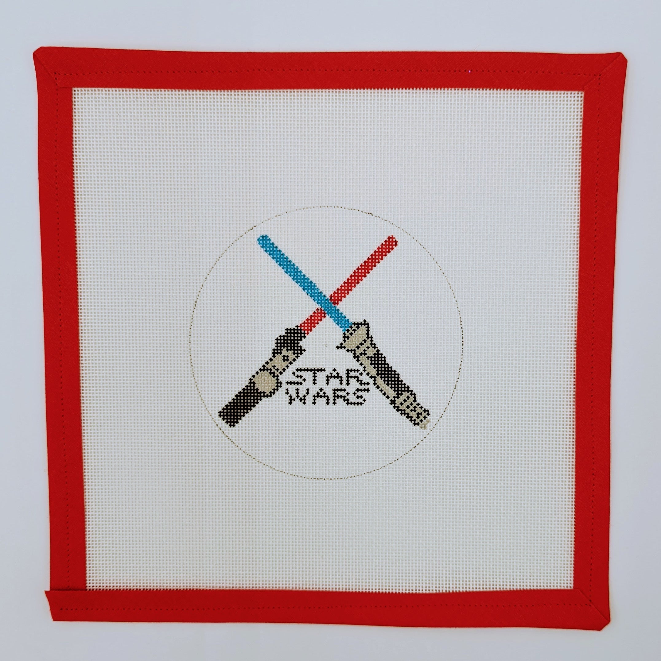 Get ready to join the battle between the light and the dark side with our stellar Star Wars Light Sabers needlepoint canvas! Showcasing a dynamic array of iconic light sabers from the legendary saga, this 18-mesh canvas brings a pop of color and excitement to your stitching projects. Perfect for making a bold ornament or a unique decorative piece, it's sure to ignite the passion of any needlepoint enthusiast across the galaxy. So grab your favorite threads and let the stitching force be with you!