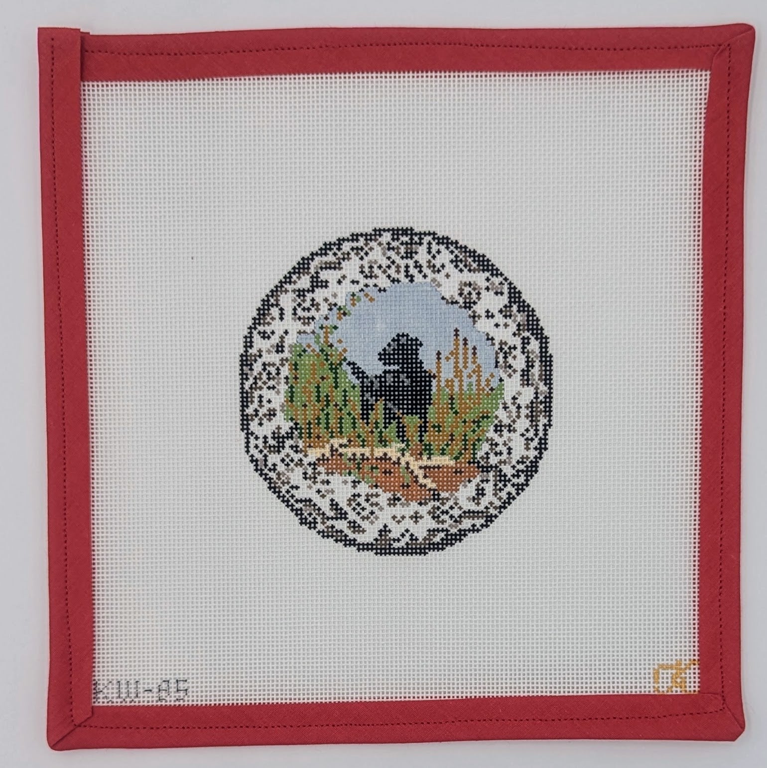 Add a touch of elegance to your decor with the Transferware Dog needlepoint canvas! This charming design features a beautifully detailed dog in the classic transferware style, perfect for dog lovers and those who appreciate fine artistry. Crafted on an 18 mesh canvas and measuring 4" round, this piece is ideal for stitching a unique ornament that showcases your love for pets and traditional design. Stitch this delightful canvas and let it bring warmth and character to your home!