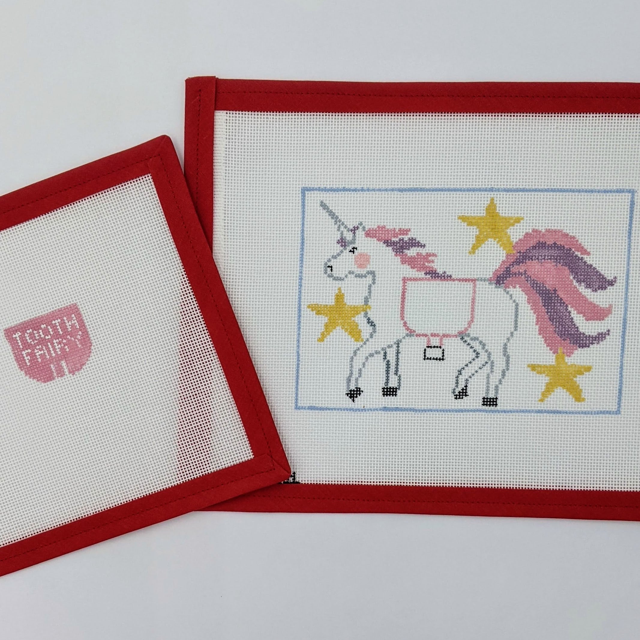 Bring a sprinkle of magic to your stitching with our enchanting Unicorn Tooth Fairy Pillow needlepoint canvas! This delightful design features a whimsical unicorn that’s sure to capture the hearts of both little ones and the young at heart. Measuring approximately 6" x 4.5", this 18-mesh canvas is perfect for creating a charming tooth fairy pillow that will add a touch of fantasy to bedtime rituals. Stitch it up and gift it to a child or keep it for your own collection — either way, it’s bound to bring smiles!