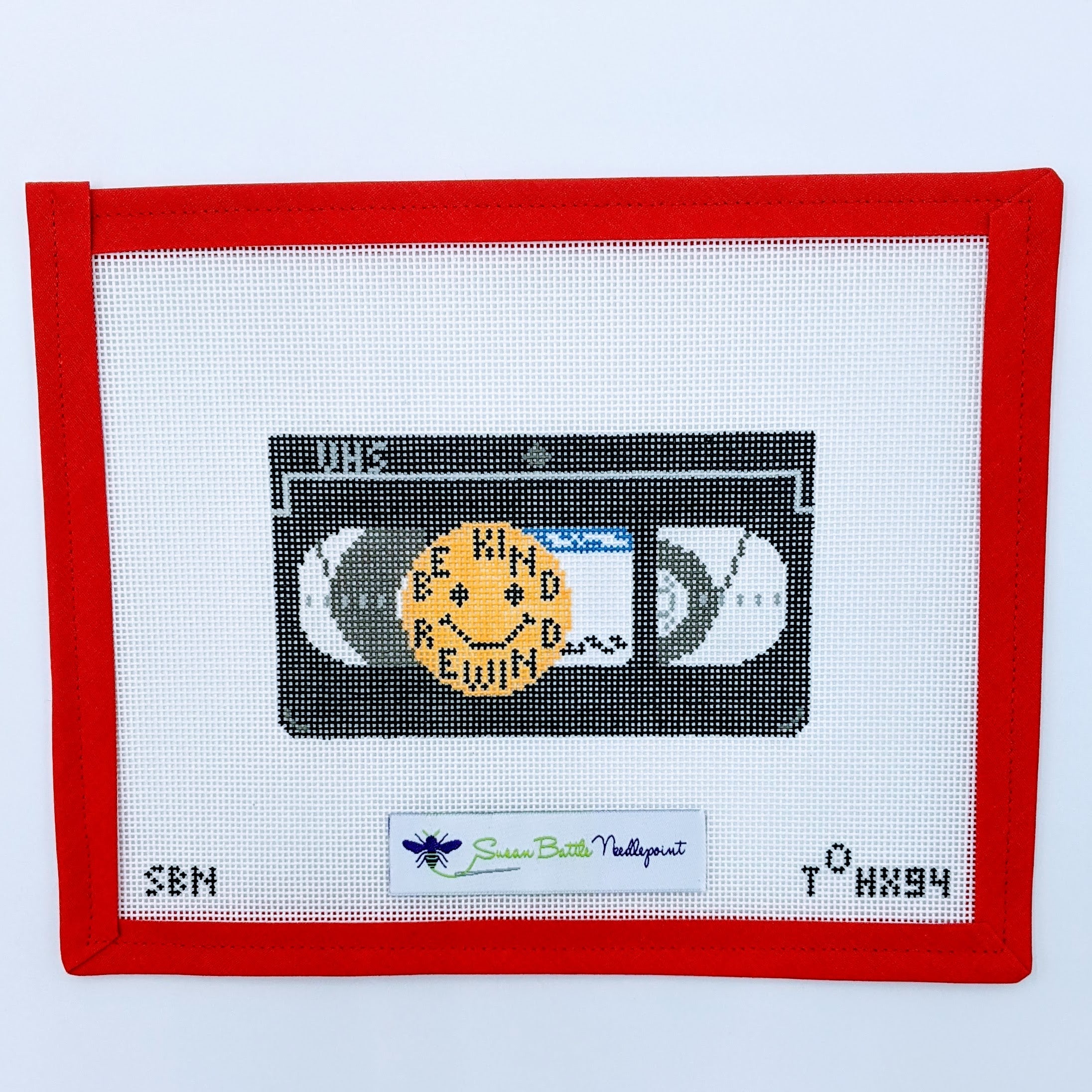 Take a nostalgic trip back to the days of VHS tapes with this VHS Tape/Be Kind...Rewind needlepoint canvas. Featuring the classic "Be Kind, Rewind" message, this design is perfect for vintage lovers and those who appreciate retro pop culture. Whether you're stitching it for yourself or as a fun gift, this canvas will add a charming, nostalgic touch to any needlepoint project.