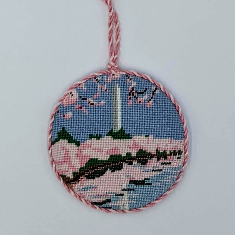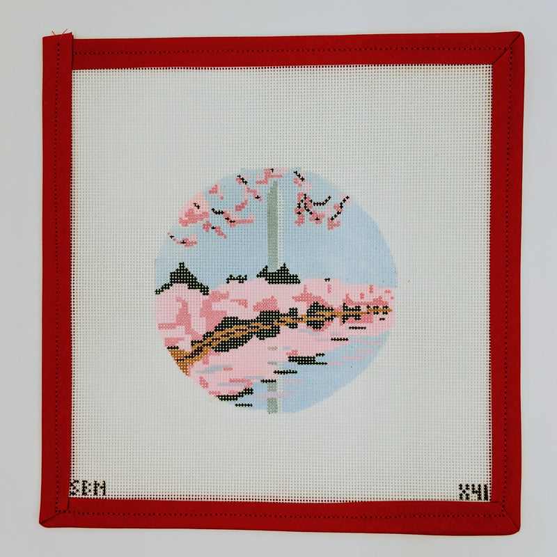 Celebrate the iconic beauty of the nation’s capital with this Washington Monument with Cherry Blossoms needlepoint canvas! Featuring the towering Washington Monument surrounded by delicate cherry blossoms, this 18-mesh design is perfect for creating a unique ornament or decorative piece. At 4.5" in diameter, it’s a quick and satisfying project for stitchers of all levels. Whether you’re stitching it as a souvenir, a gift, or simply to celebrate spring, this canvas is a timeless tribute to D.C.’s most famous landmarks.