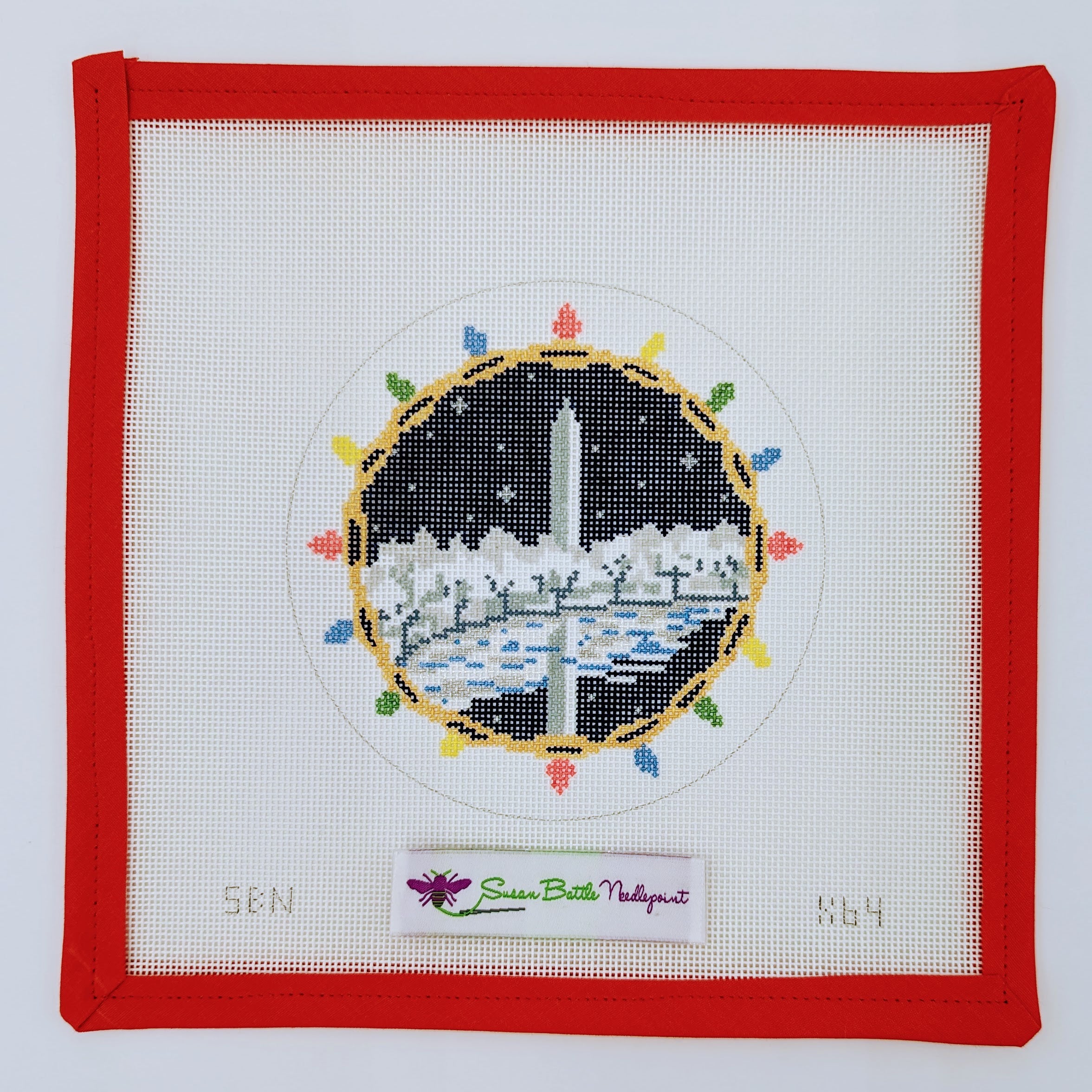 Celebrate the beauty of Washington, D.C. with this stunning Washington Monument with Night Sky & Lights needlepoint canvas! Featuring a breathtaking view of the iconic monument illuminated against a night sky, this design captures the majesty of the nation's capital in a vibrant, memorable way. Perfect for anyone who loves U.S. landmarks or enjoys adding a touch of history to their needlepoint projects!