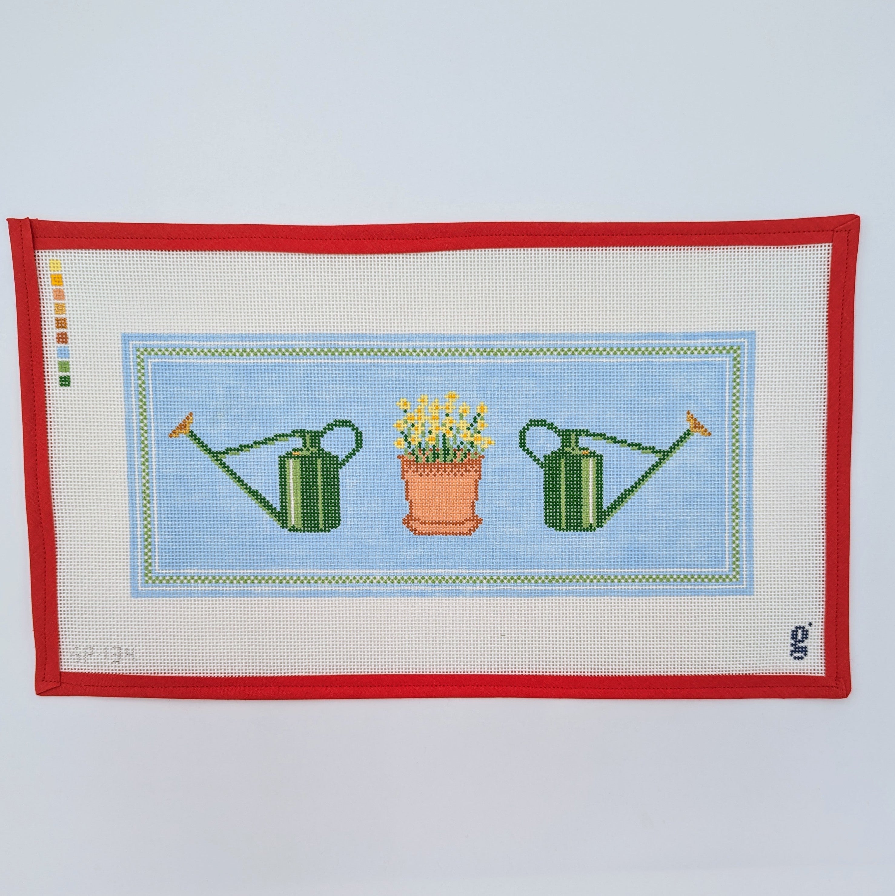 Bring a touch of charm to your home with the Watering Cans Trio needlepoint canvas! This delightful design features three whimsical watering cans, perfect for adding a playful and colorful element to your decor. Crafted on a 13 mesh canvas and measuring 13.5” x 5.5”, this piece offers ample space for stitching intricate details that celebrate gardening and floral beauty. Stitch this lovely canvas and let it brighten your space with a burst of creativity!