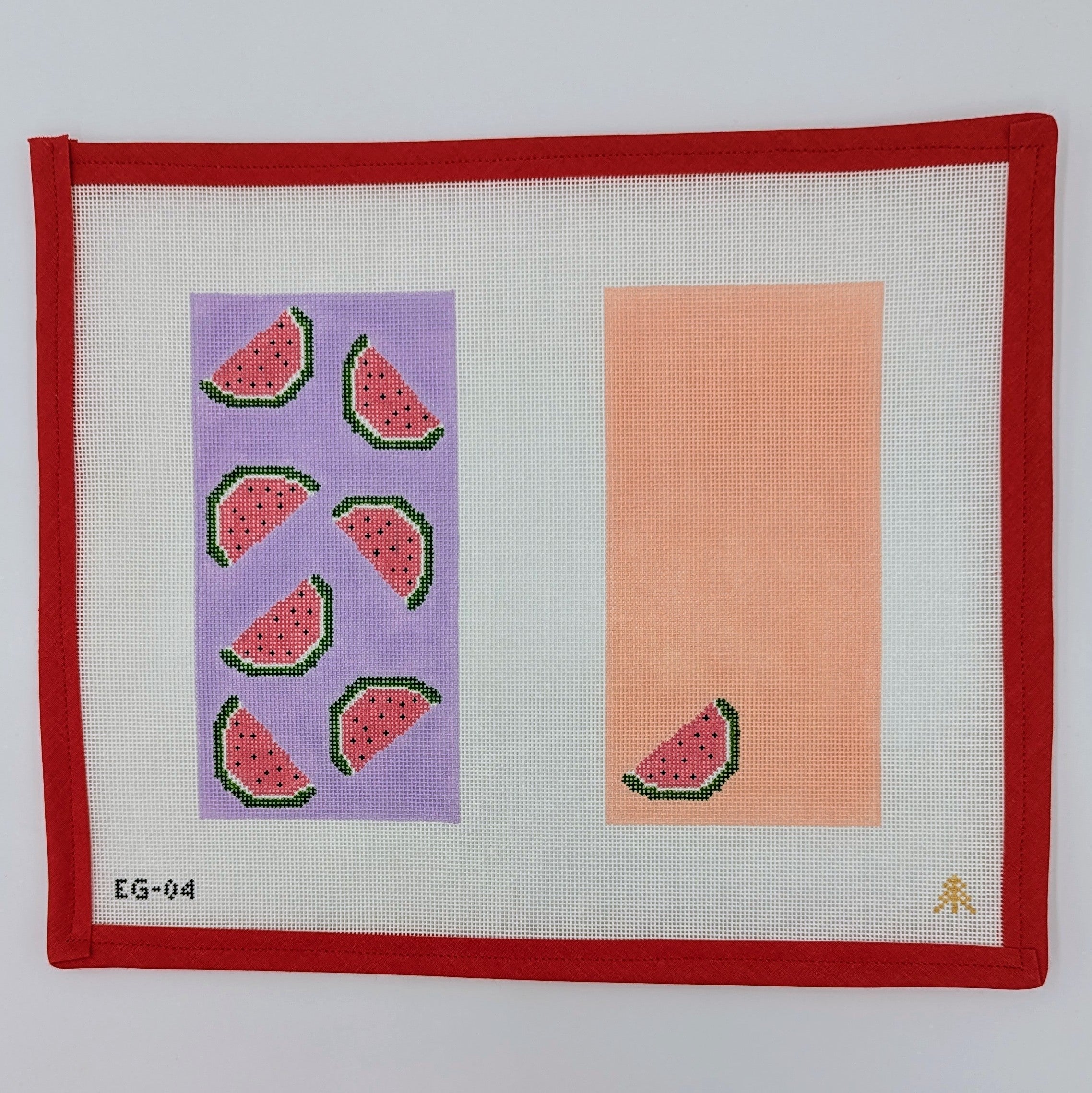 Get ready to bring a burst of summer fun into your stitching with our delightful Watermelons EGC needlepoint canvas! Showcasing juicy slices of watermelon with vibrant colors, this 18-mesh canvas is perfect for adding a splash of fruity charm to your décor. Measuring approximately 3.5” x 7”, it’s an ideal size for creating an eye-catching ornament or a charming accent piece. Grab your needle and thread and let the fun begin; this canvas makes for a wonderful gift too!